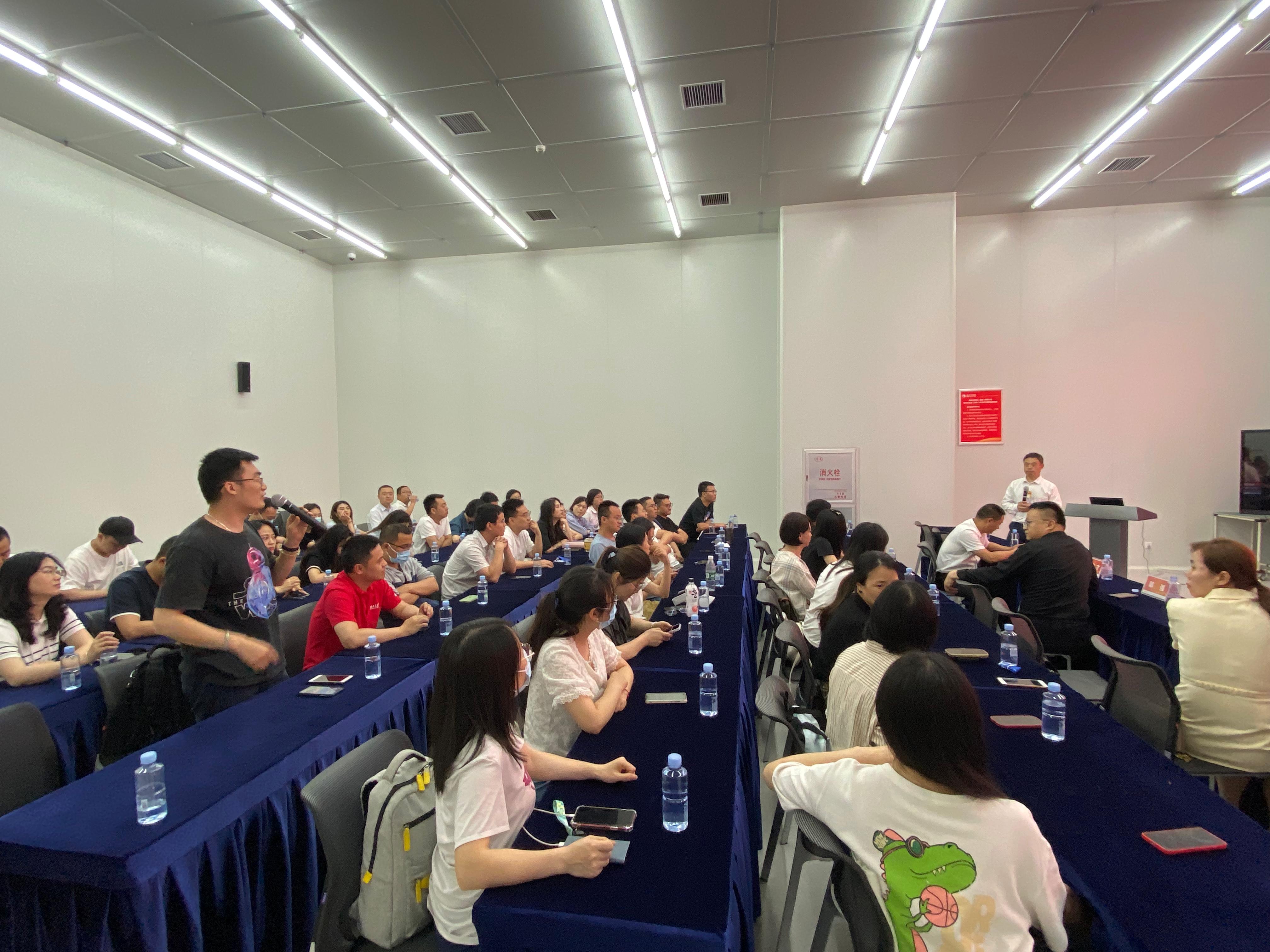 2022级MBA周末四班副班长吴中才作为企业生产管理者,向师生系统讲解了通威太阳能公司的智能制造及管理方式,同时现场与老师同学们针对设备自动化、仪器国产化率、企业科技投入、自动化人力成本、市场竞争状况等多方面的话题进行了深入交流探讨。