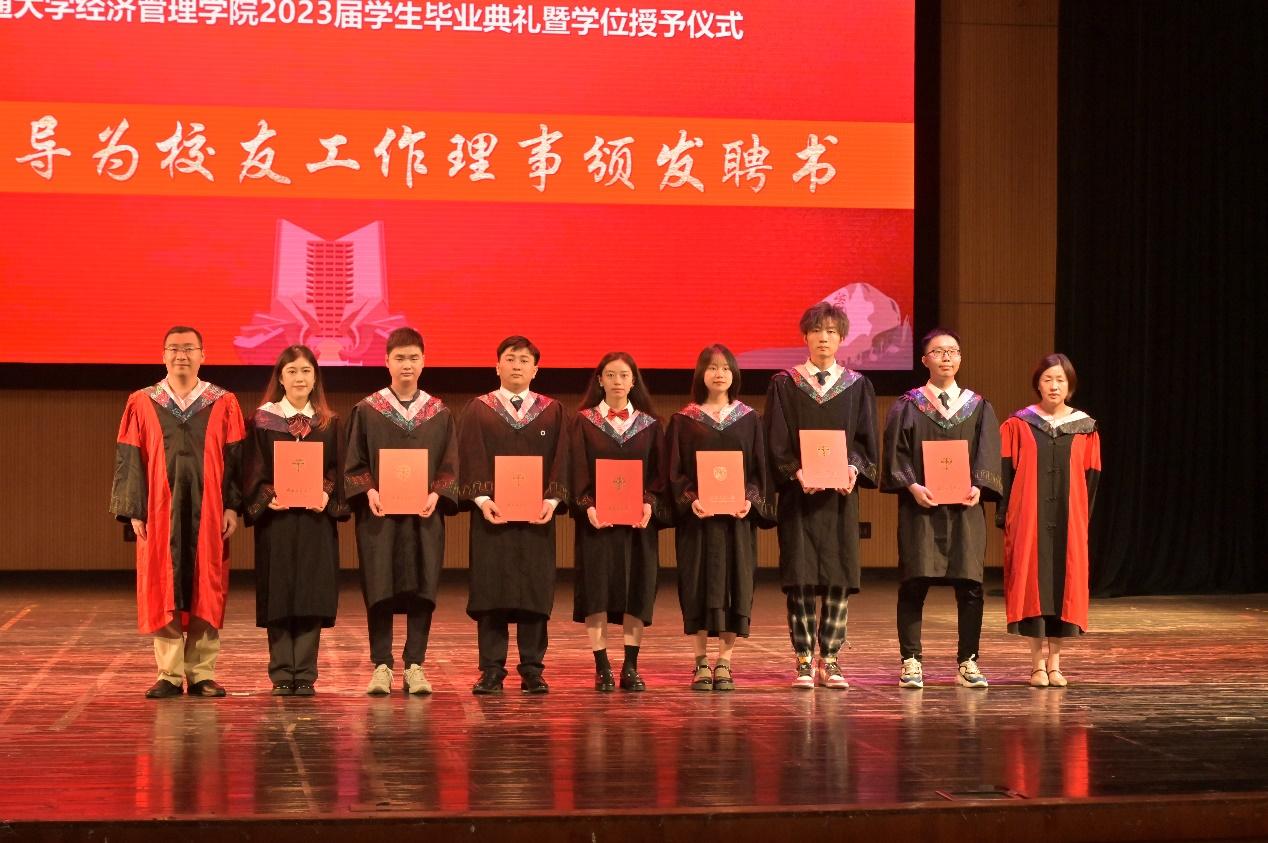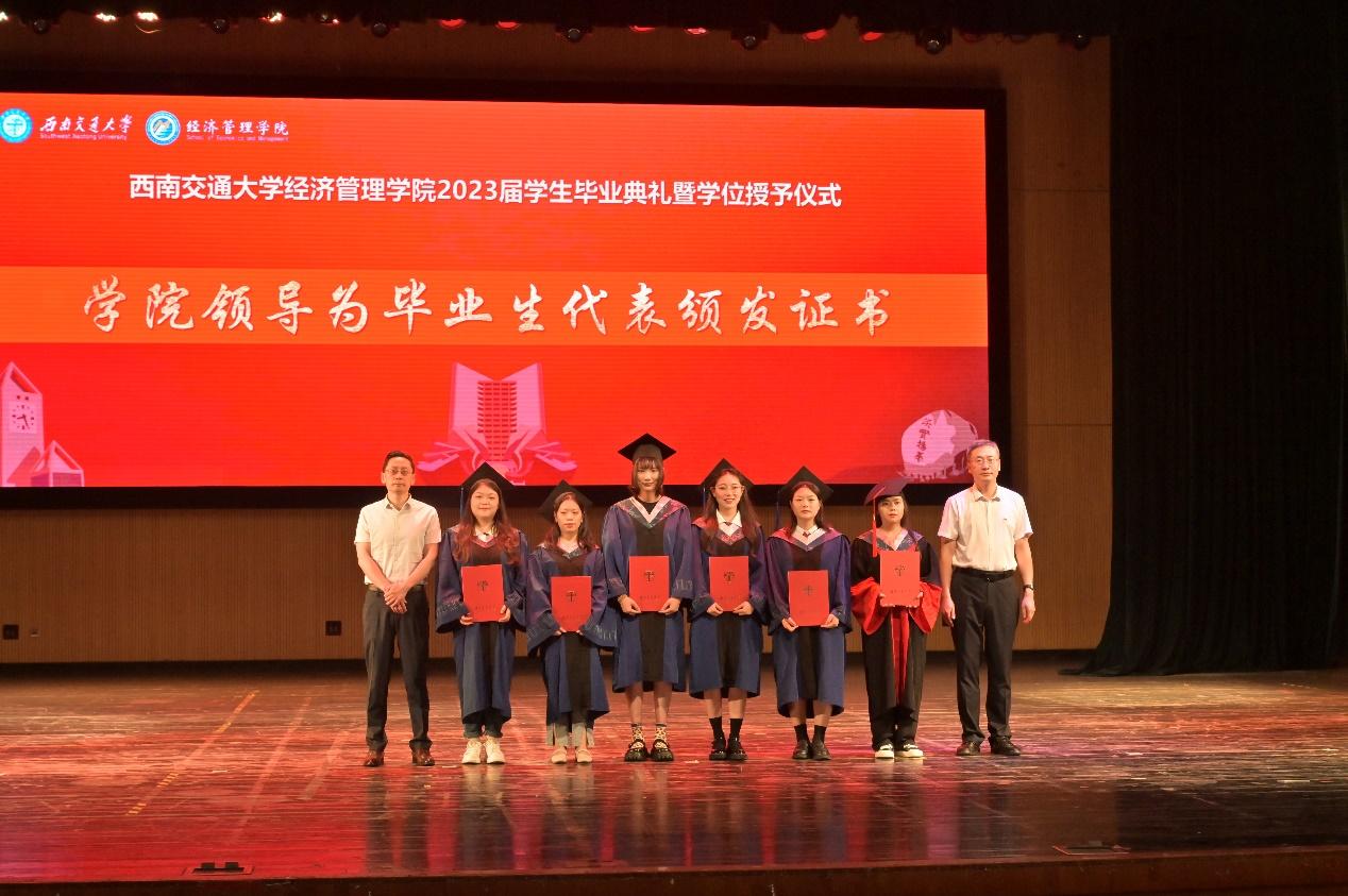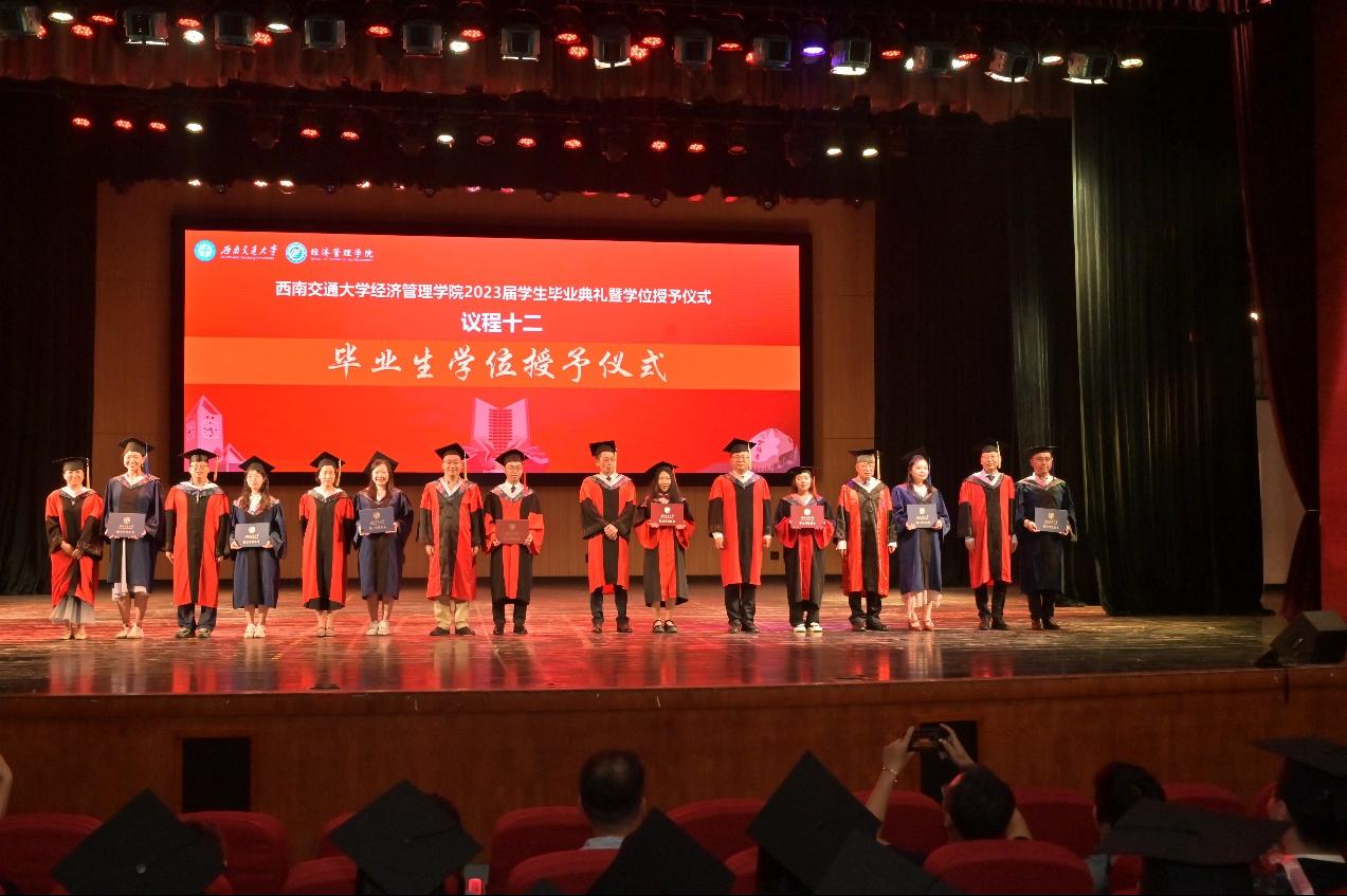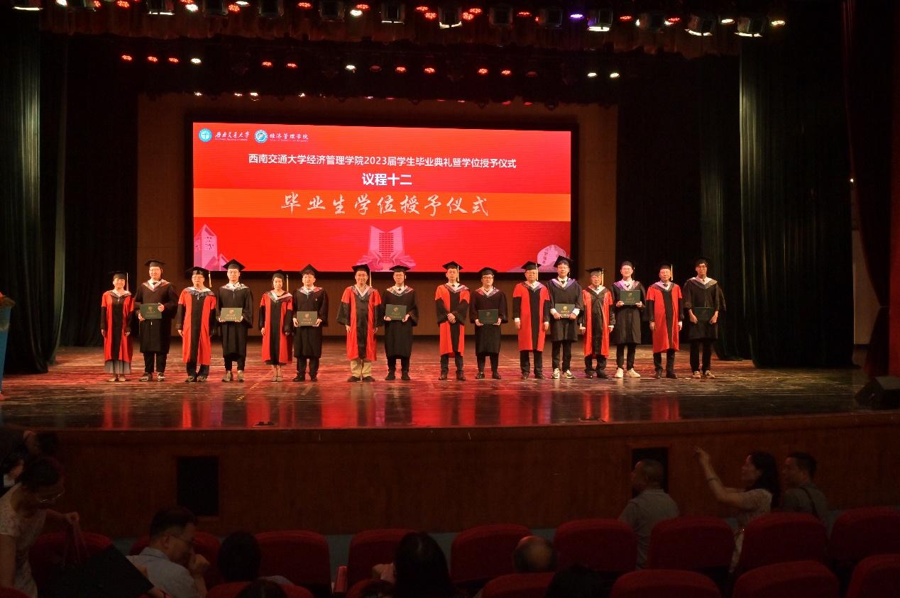 2023年6月17日下午,以“怀经管初心 华交大荣光”为主题的英国上市365官网2023届学生毕业典礼暨学位授予仪式在九里校区大学生会堂隆重举行。学院全体领导班子成员、学院学位评定分委会委员、各系和职能部门负责人、专业负责人、教师代表、毕业生辅导员和班主任,及学院2023届全体毕业生出席本次典礼。本次典礼由学院党委副书记杨宏毅主持。