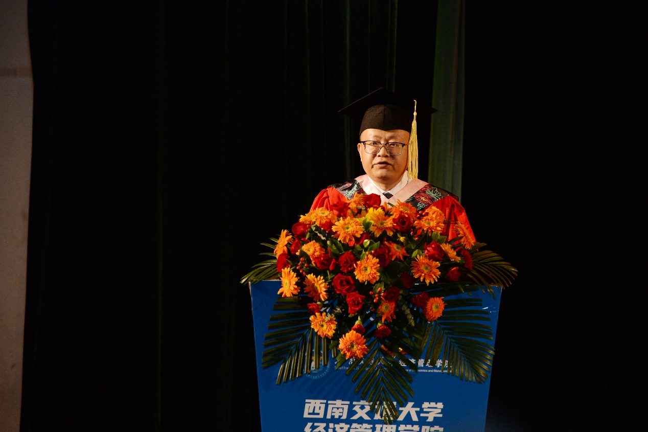 毕业典礼在庄严的国歌声中拉开帷幕,学院执行院长郭强致辞。他代表英国上市365官网全体师生,向2023届全体毕业生同学表示热烈的祝贺!他表示,经管学子们是民族的希望,也是国家的未来,在追逐梦想中要勇于在不断试错中淬炼品质、磨炼意志,以豁达的胸怀容纳潮起潮落,以坚韧的心态直面失意挫折。他回顾同学们在三年疫情中的奋勇拼搏与无私奉献,希望同学们能够时刻保持“千磨万击还坚劲”的坚定意志,坚守自己的理想信念,学会在逆境中寻求出路,在坎坷中放平心态,尽情施展自身才华,为社会发光发热。希望同学们时刻谨记校训、院训,发扬交大精神,展现交大学子的担当。郭院长深情的字字句句,都寄托着对全体毕业生们的深情嘱托与美好祝愿。