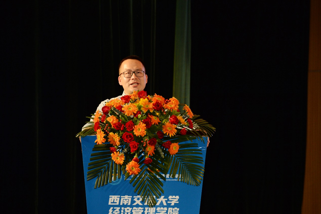 校友代表、2008届工程管理本科毕业生、2011届管理科学与工程硕士毕业生、现任新希望六和股份有限公司饲料产业BU人力资源总经理李淑朋致辞。李淑朋校友通过回顾他的校园时光及工作经历,分享了争做“三力”(愿力、心力、能力)好青年的感悟,希望对同学们有所启发和受益。他的致辞表达了校友们虽走出了校园却仍然关心母校、母院的前途和发展,同时也祝愿我们2023届毕业生们活出勇敢、笃定绽放的人生。