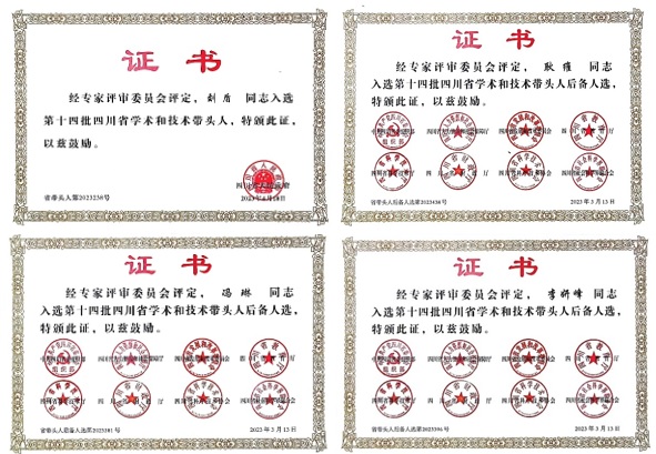 根据四川省人民政府《关于印发第十四批四川省学术和技术带头人名单的通知》(川府发〔2023〕13号),365官网刘盾教授入选“第十四批四川省学术和技术带头人”,李妍峰教授、耿维副教授、冯琳副教授入选“第十四批四川省学术与技术带头人后备人选”。