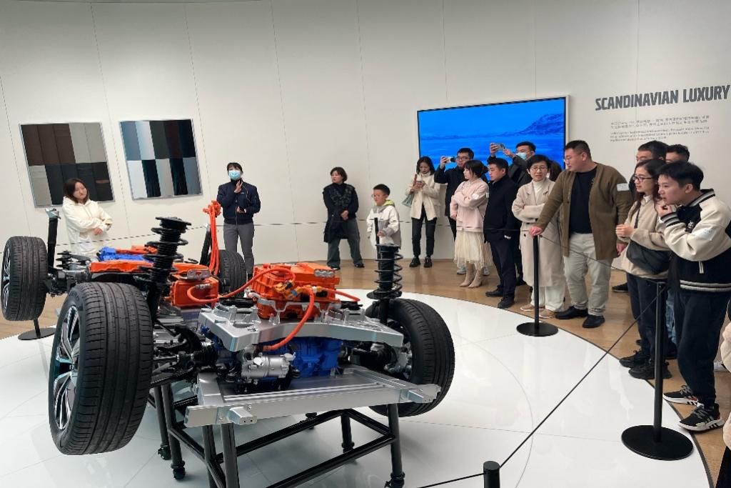 考察行程始于工厂的产品展厅,随后学生们参观了厂区的生产线,看到了如何从零部件组装到成品汽车的全过程。沃尔沃成都工厂的工作人员热情地接待了每位参观者,并详细介绍了他们在安全性(城市安全系统)、环保技术以及驾驶辅助系统等方面的先进技术和成果。学生们对沃尔沃汽车的先进制造技术和制造流程展示出极高的兴趣。其中,工作人员热情的讲解了三只不同的鞋子代表沃尔沃三大类产品的市场定位,即生动又精准的市场定位,不由得让同学们联系上市场营销课程中关于产品的市场定位以及定价策略。