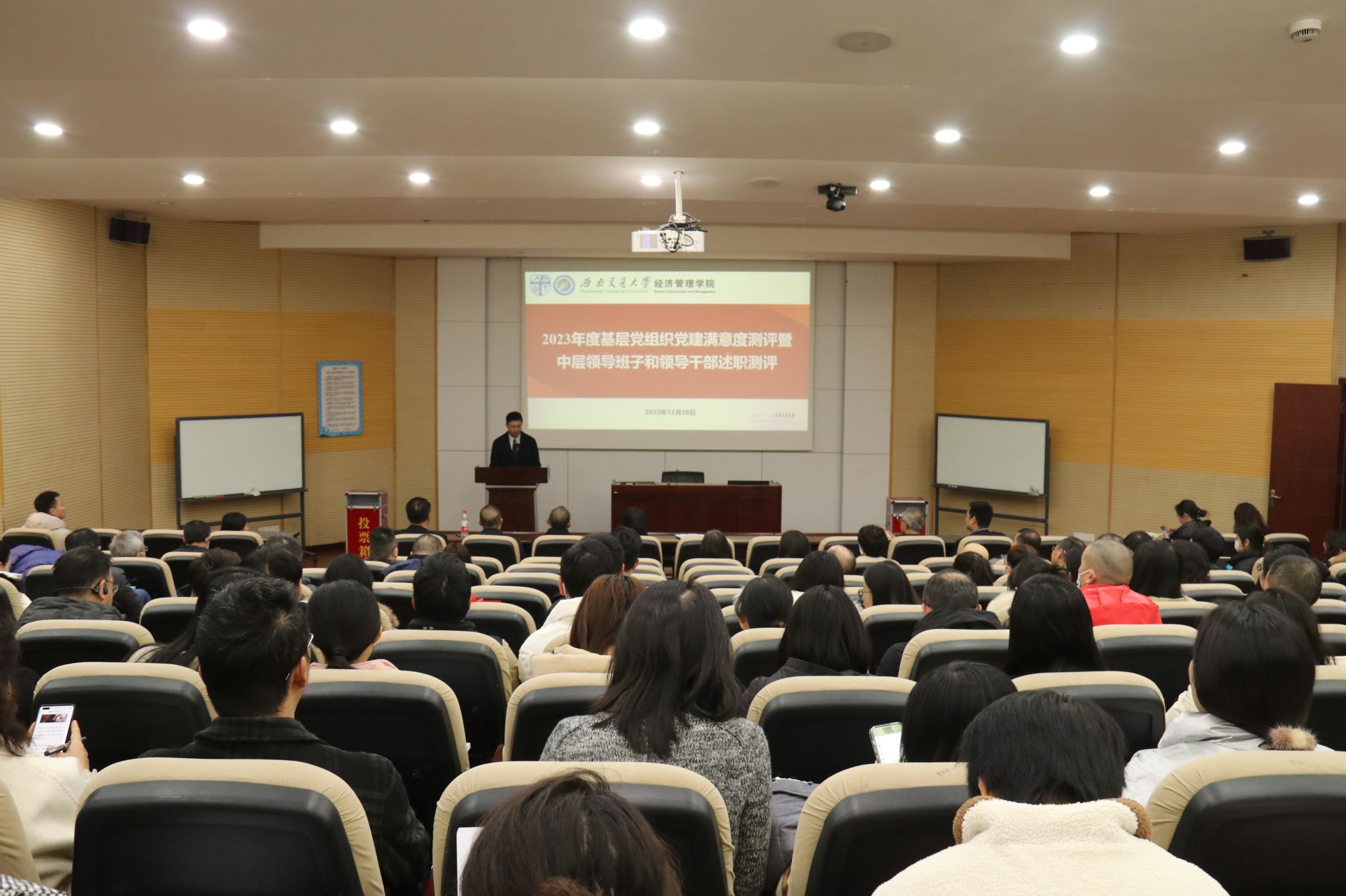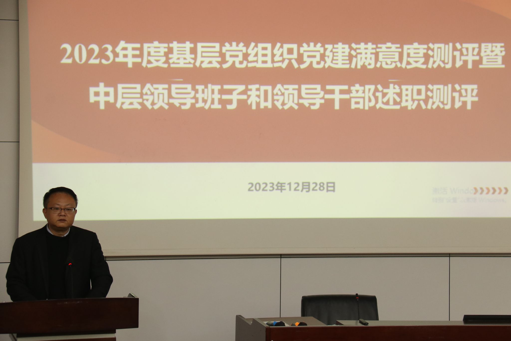 按照学校党委工作部署,2023年12月28日下午16:00,英国上市365官网2023年度党建满意度测评暨中层领导班子和领导干部述职测评大会在九里校区0215教室召开。学院党政领导班子全体成员,学院教职工和学生党员代表参加测评,会议由学院党委书记郭强主持。