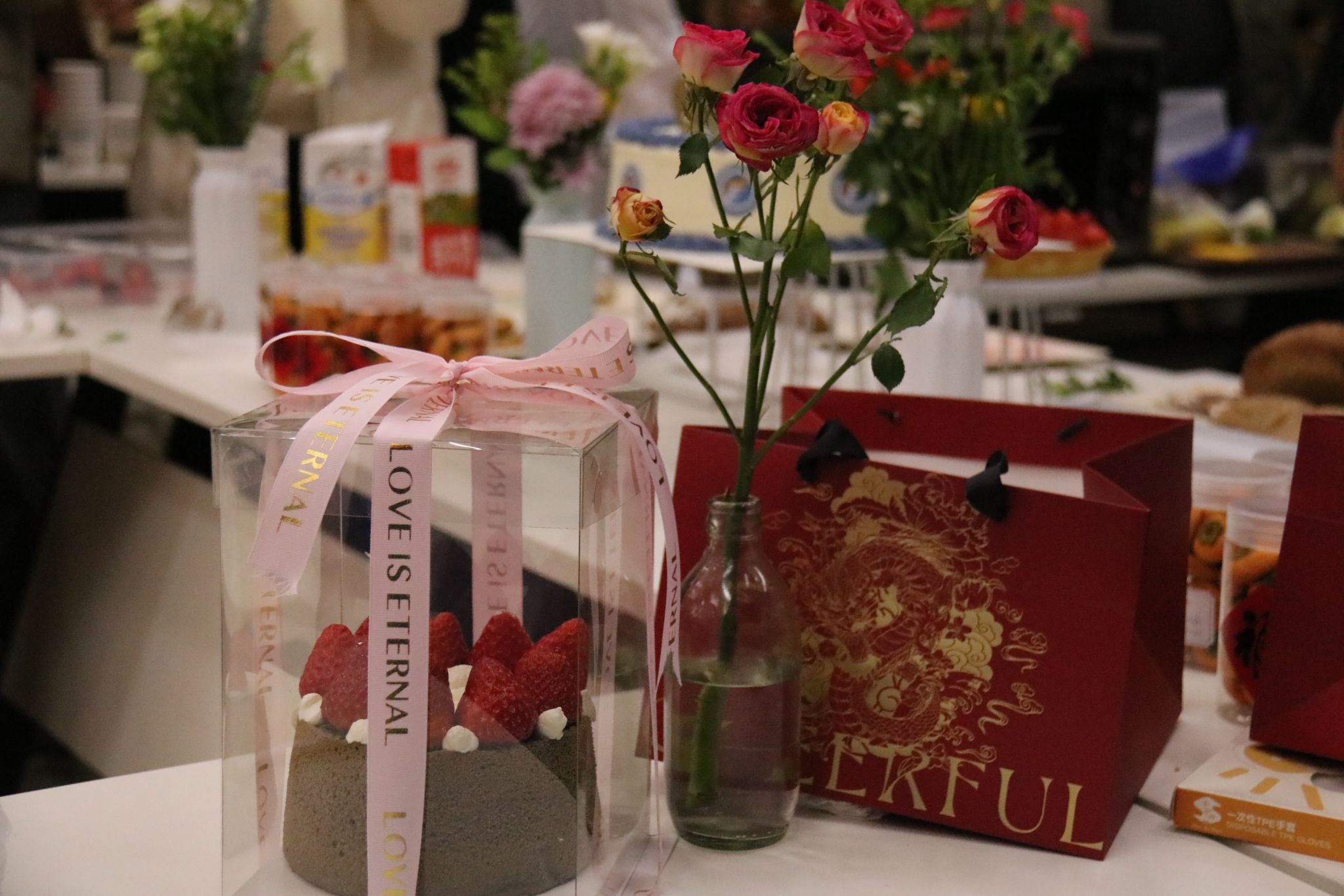 在烘焙师的指导下,老师们学习认识每一种烘焙原料,了解制作步骤,掌控好原料比例与烤箱温度,亲手制作精美糕点。一枚枚“柿柿如意”曲奇、一份份精致的水果蛋糕,一杯杯沁人心脾的茶饮,让在场的每一位教职工都感受到了满满的幸福感。随着香味飘散弥漫,活动现场充满了欢声笑语,留下了珍贵、美好的回忆。
