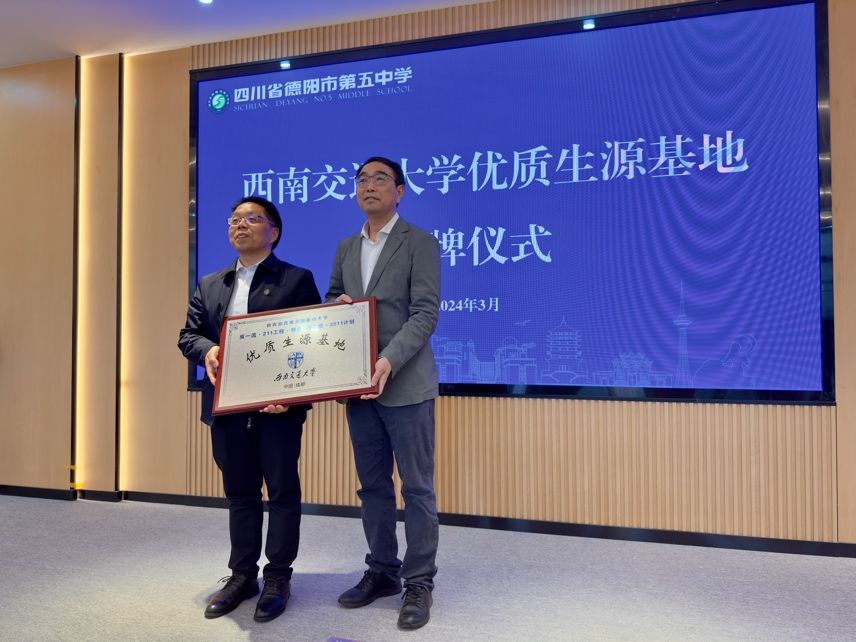 为进一步做好学校及学院招生宣传工作,提升生源质量,强化与各生源地中学之间的沟通与交流, 3月23日,英国上市365官网招生就业处处长陈岩峰、英国上市365官网院长韩科一行前往德阳五中及绵竹中学举行“优质生源基地”授牌仪式。