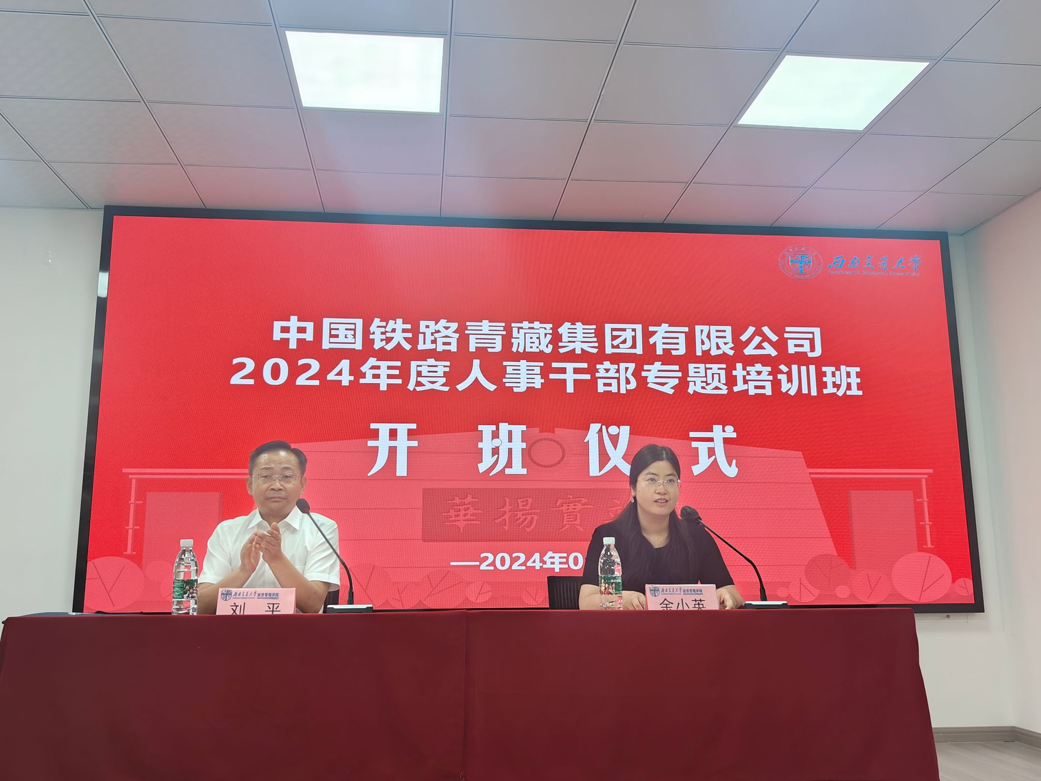 2024年5月20日上午08:30,由365官网承办的中国铁路青藏集团有限公司(以下简称“青藏集团公司”)2024年度人事干部专题培训班在英国上市365官网九里校区0819教室顺利开班,青藏集团公司人事部(党委组织部)部长刘平、英国上市365官网党委副书记余小英出席开班仪式。