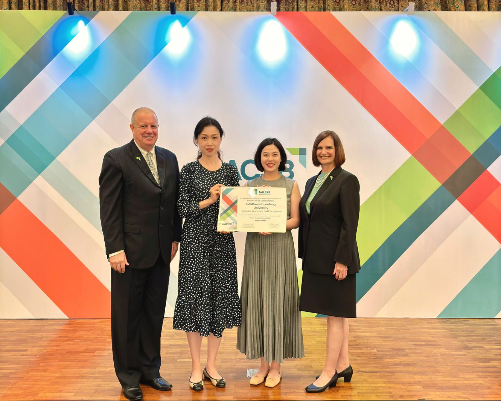 王一帆和范婷代表学院领取了AACSB认证证书,并与AACSB亚太区执行副总裁、全球首席会员总监、亚太区执行董事Geoff Perry博士,以及AACSB亚太区执行副总裁、首席认证总监、美国执行董事Stephanie Bryant就AACSB国际认证持续改进要求进行了深入交流,为学院后续的AACSB认证工作获取了宝贵建议。同时,学院在会议中展示学院特色并积极探索国际交流合作机会,为提高学院国际影响力,与其他国际高等商学院达成合作打下良好基础。