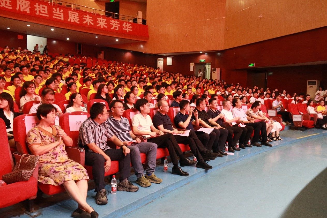 议程三,新生班主任代表卢朝阳发言。卢朝阳首先对开启人生新征程的同学们表示真诚的祝贺,并就新生如何尽快适应大学生活提出了三点建议:第一,完成角色转换,明确未来目标。她表示,独立与自律是基础也是关键,在摸索中应逐步清晰自己的未来规划与努力方向,同时积极利用丰富资源,助力梦想实现;第二,夯实知识基础,果毅力行。她强调了本科知识基础的重要性,理解科学技术发展规律、胜任工作岗位、适应时代与社会都离不开知识的支撑;第三,学会面对挫折。胜败乃兵家常事,如何在挫折中成长才是关键,希望大家正确看待挫败,必要时积极寻求帮助渡过难关。