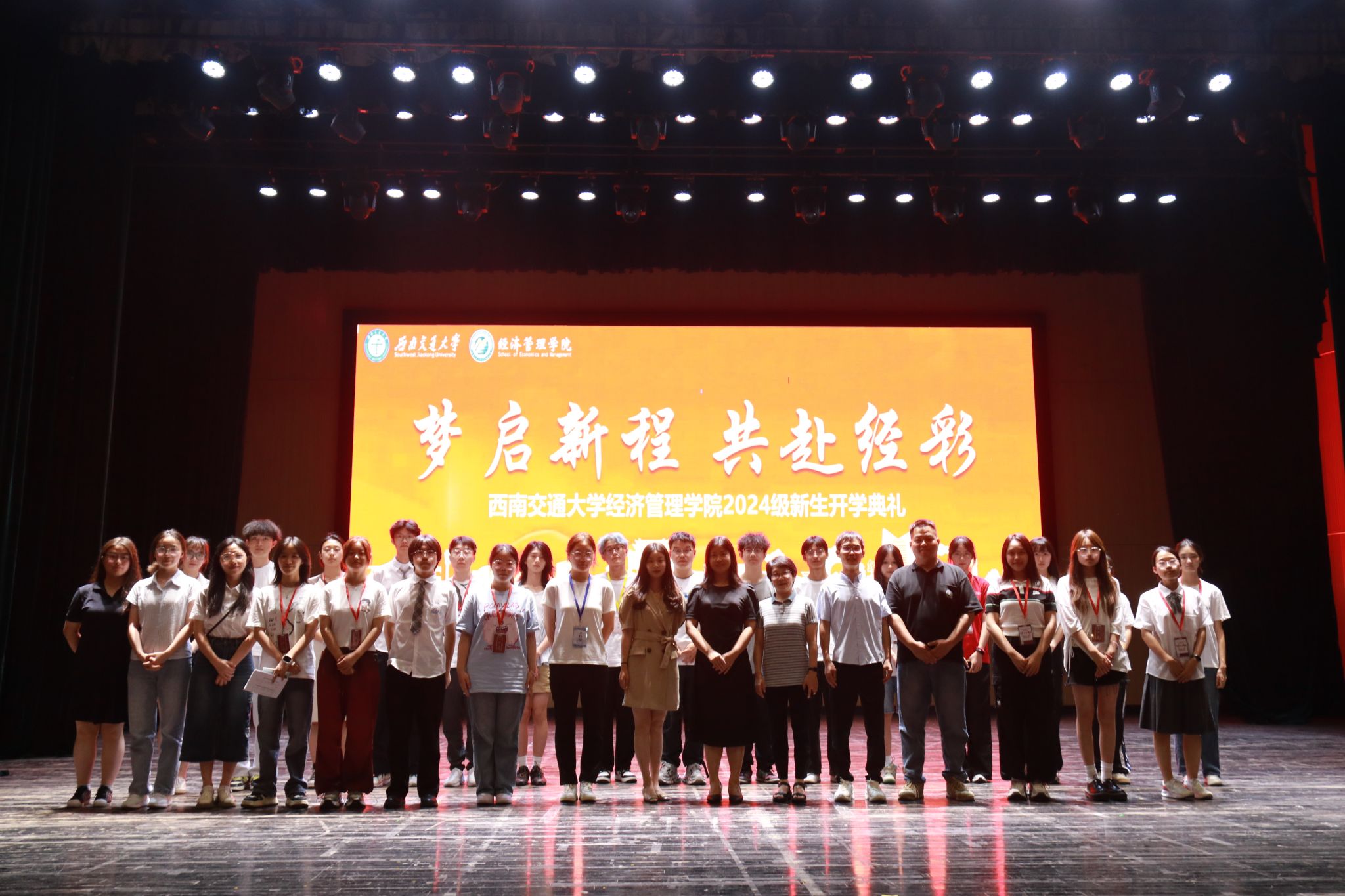2024年8月31日晚,英国上市365官网2024级新生开学典礼在学生大会堂隆重举行。出席本次开学典礼的领导和嘉宾有:学院党委书记郭强,院长韩科,学院党委副书记、纪委书记晏理斌,副院长李良、聂佳佳、马锋,以及学院各系、中心的教职工代表,各班班主任,2024级辅导员。活动由学院党委副书记余小英主持。