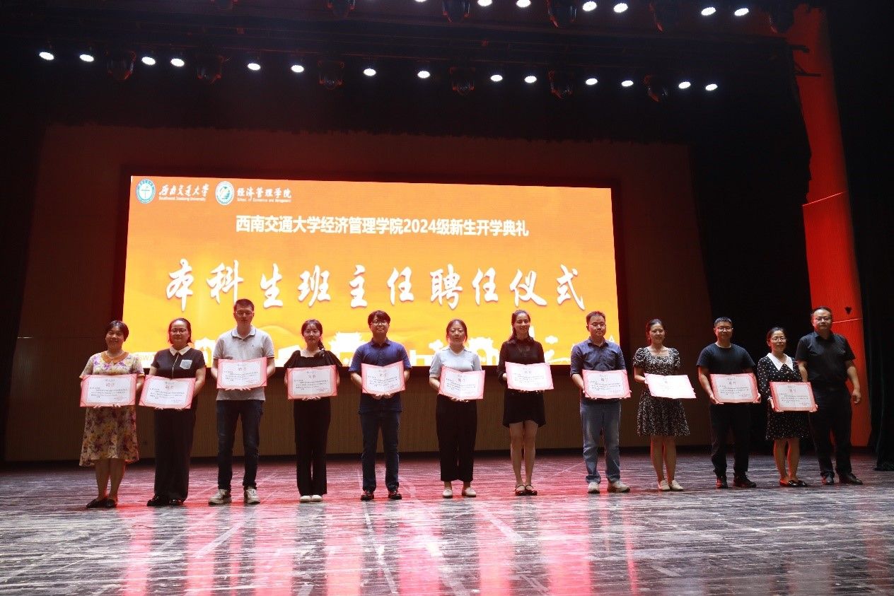 议程七,2024级本科生班主任聘任仪式。在同学们热烈的中,郭强为本科新生十四位班主任颁发聘书,并合影留念。