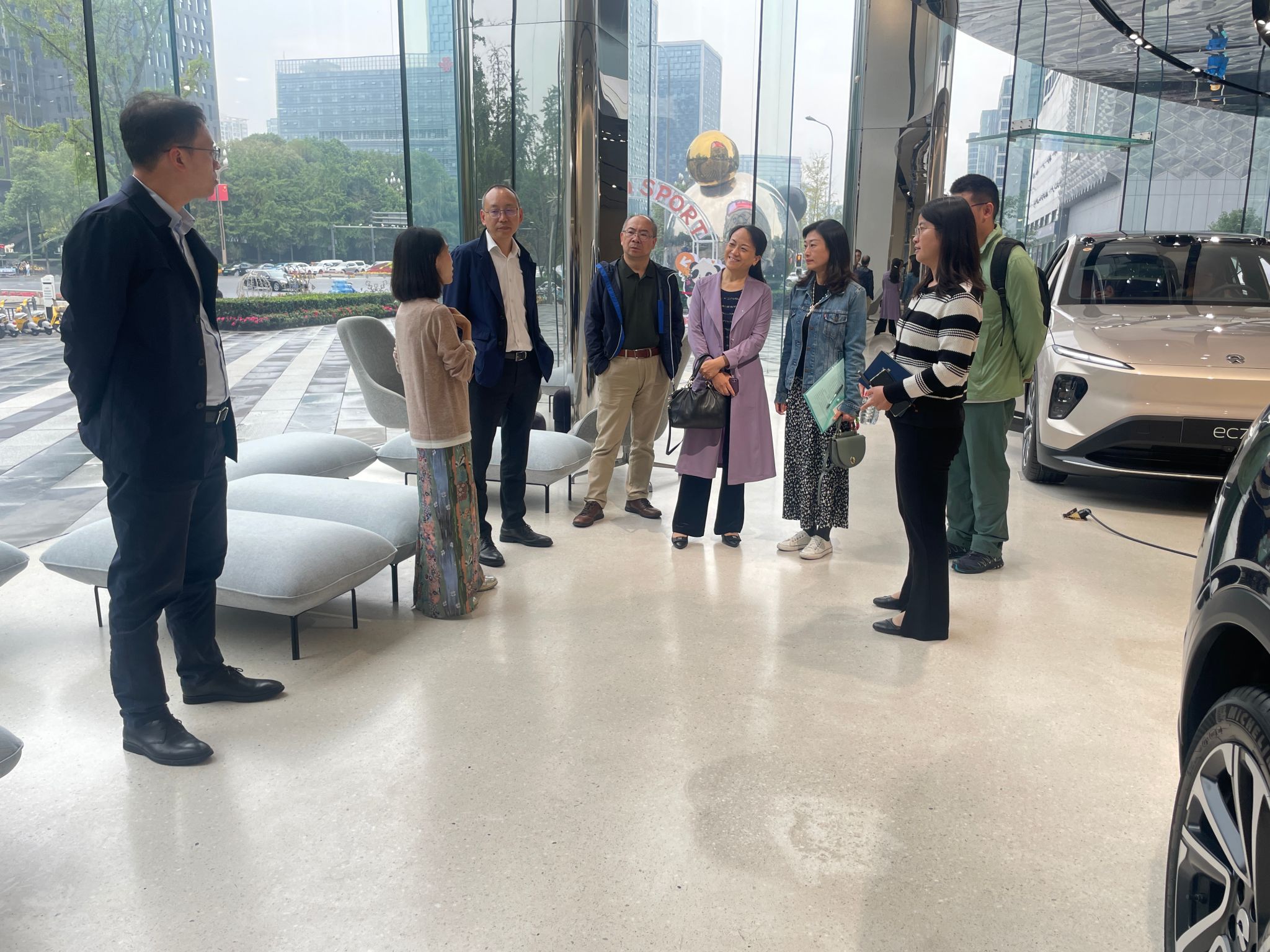 活动开始前,学院一行人乘坐蔚来汽车最新款车型车辆抵达现场,亲身体验了蔚来电车的卓越性能和先进技术。随后,在蔚来负责人许文娟的热情引导下,365官网代表参观蔚来汽车展厅,深入了解了蔚来从创立至今的辉煌历程、发展理念以及未来规划。