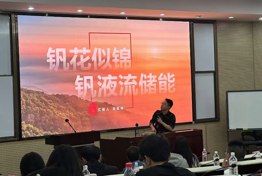 重庆大学管理科学与房地产学院2023级MEM邓辰伟以国家政策文件为依托,介绍了储能行业的发展前景,并强调了新型电力系统构建的“清洁化、柔性化、分散化、数智化”的四大要素,而“柔性化”则是储能行业发展的关键所在,由浅入深介绍了钒液流储能的技术原理、企业发展与典型项目,让同学们增加了对储能相关行业知识层面的了解。