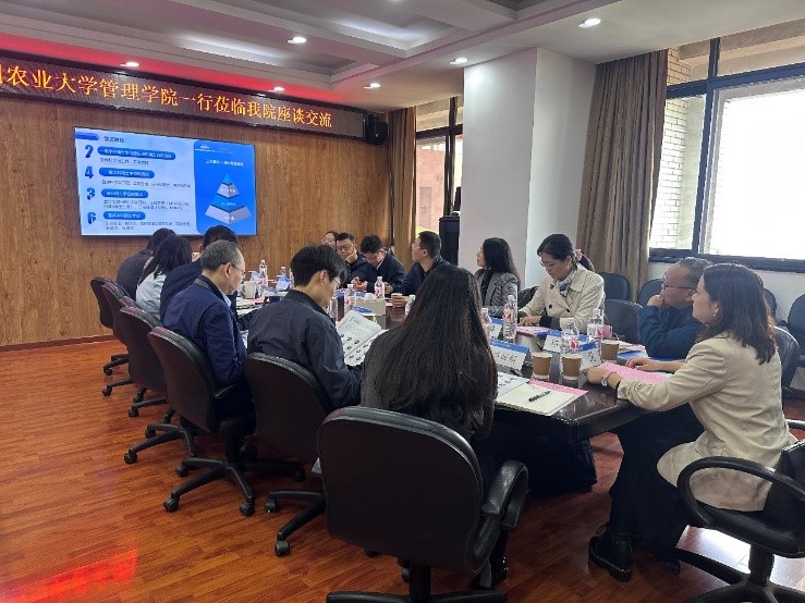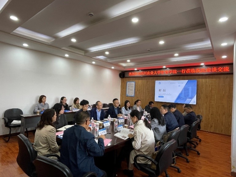 学院党委书记郭强首先对四川农业大学管理学院领导和老师一行的到来表示热烈欢迎,他详细介绍了学院的基本情况、科研工作及人才队伍建设等内容。四川农业大学管理学院院长蓝红星介绍了四川农业大学管理学院的概况、师资队伍、学科专业、科研等方面的情况,并说明了本次调研的目的和主要内容。