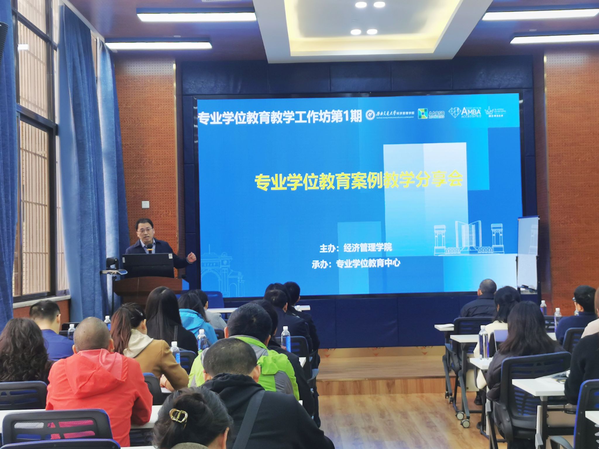 院长韩科为本次活动致辞。他强调,在专业学位教育市场竞争日益白热化的当下,学院要立足培养质量、锤炼经管特色,针对性地为授课教师理论与实践教学充分赋能。同时,希望“专业学位教育教学工作坊”成为学院提升教育教学质量的特色活动,通过形式丰富的交流研讨,增强发展内驱力,促进理论与实践的深度融合,助力专业学位教育项目的高质量发展。
