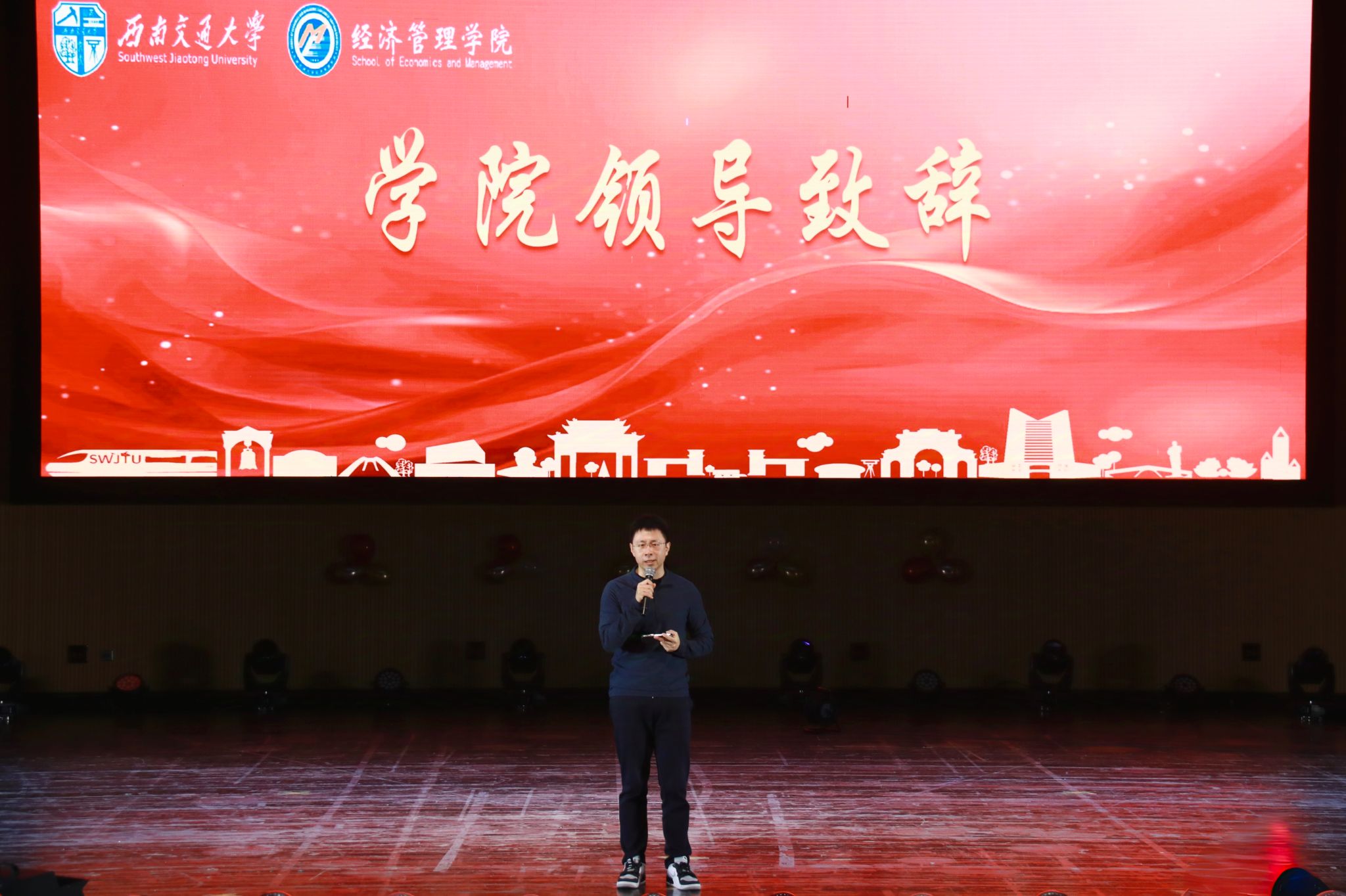为热烈欢迎2024级经管新学子,迎接2025年的到来,2024年11月30日,英国上市365官网在九里校区大学生会堂举办“逐梦新征程 同心赴未来”2024级迎新晚会。英国上市365官网院长韩科,党委副书记余小英,副院长李良、聂佳佳,团委书记贾佳,本科2024级各班班主任老师,学生工作组全体辅导员,电子科技大学经济与管理学院、西南财经大学会计学院学生会主席以及各兄弟学院学生会嘉宾出席晚会。