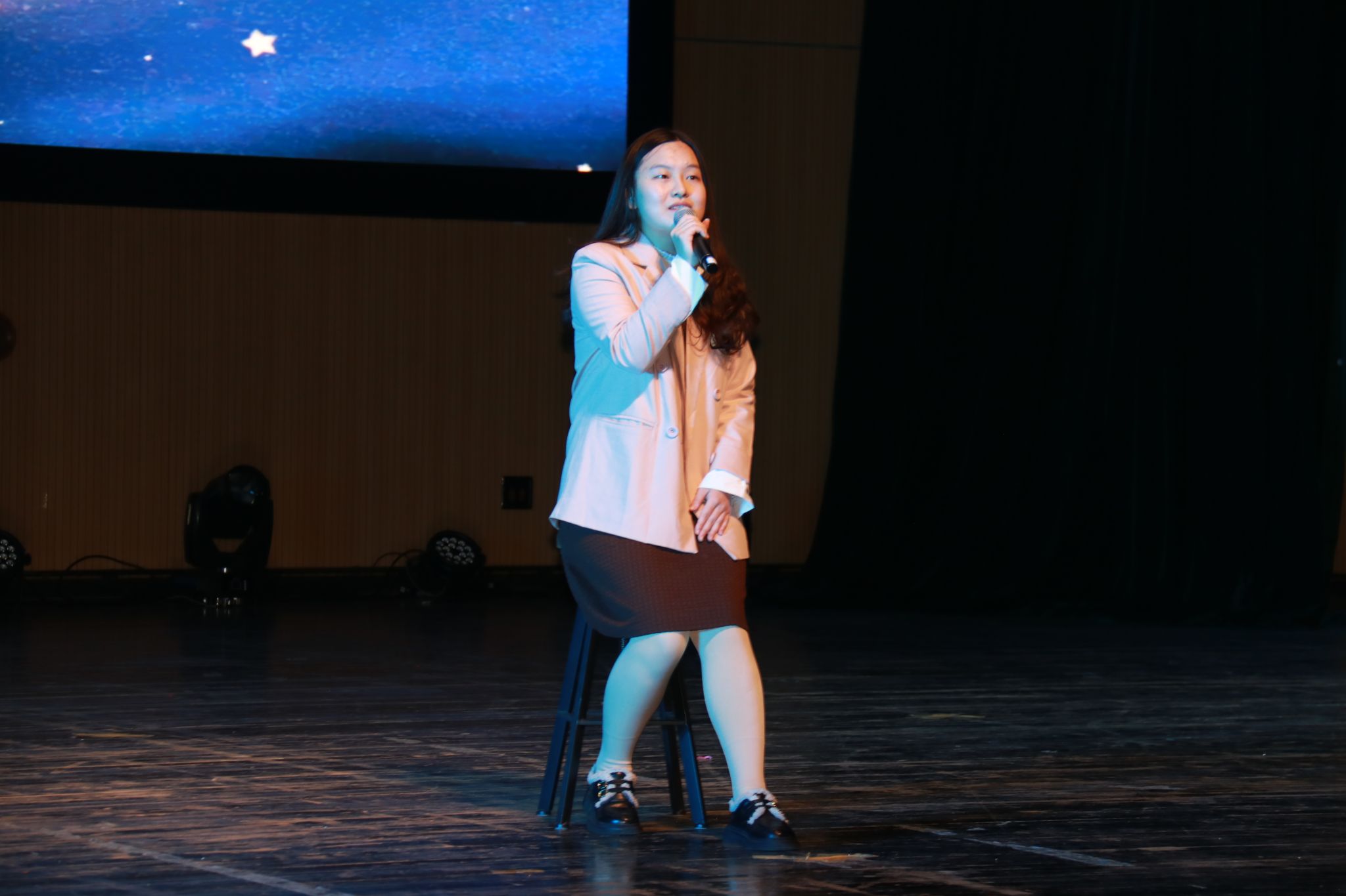 中场休息穿插了有趣的互动环节,由王哿老师、贾佳老师、余小英老师分别抽取幸运观众,现场师生热情高涨,积极参与其中,为晚会增添了更多的惊喜和欢乐。