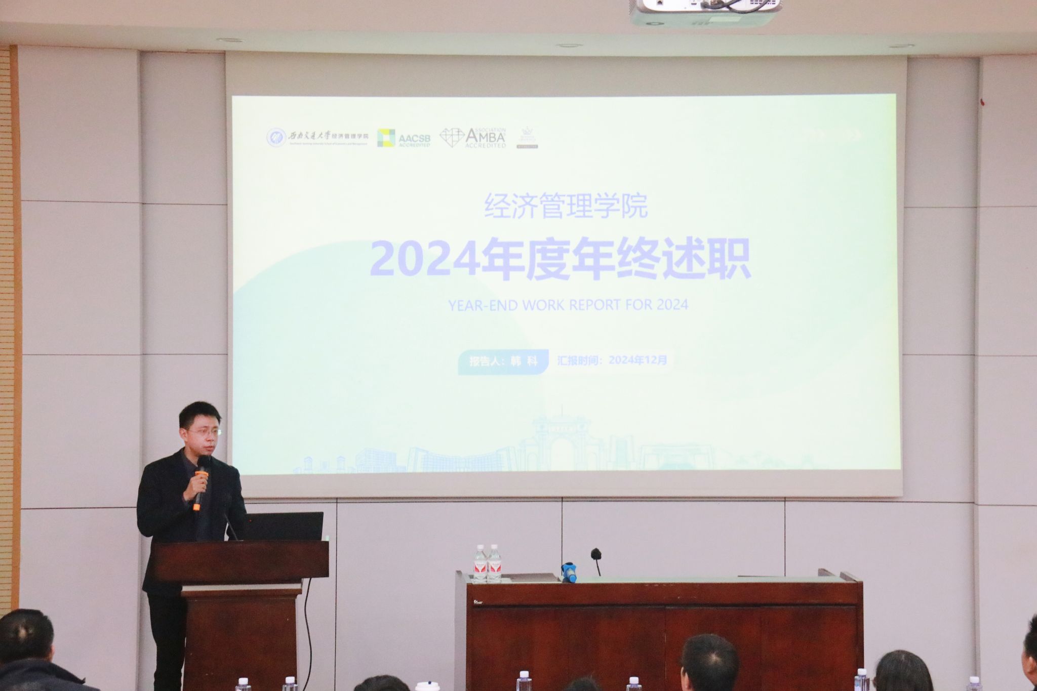 学院院长韩科全面总结了学院过去一年的工作成果。韩科指出,英国上市365官网秉承“格物致知、和合共进”的院训精神,与改革开放同向同行、与时代发展同频共振,本年度学院打造人才集聚“强磁场”,汇聚共进“向心力”;构筑教学培养“生态圈”,锻造竞争“强筋骨”;深化科研创新“动力源”,点燃发展“新引擎”;亮出学院建设“新名片”,共筑经管“朋友圈”,取得了显著成绩,并从高层次人才梯队、学科冲顶高水平、人才培养登新峰、国内一流影响力、支持与保障5个方面展望学院未来发展蓝图。