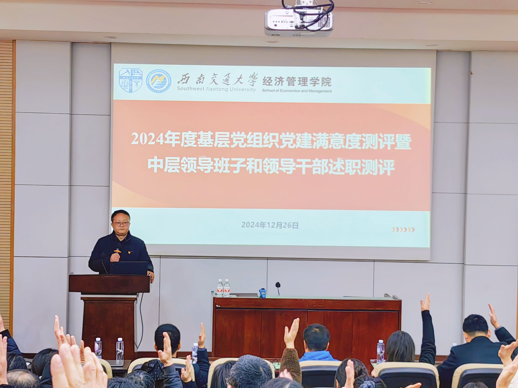 2024年12月26日下午在0215报告厅,按照学校工作部署,英国上市365官网召开2024年度党建满意度测评和中层领导干部考评暨2024年双代会。学院党政领导班子全体成员、学院教职工和学生党员代表参加测评,会议由学院党委书记郭强主持。