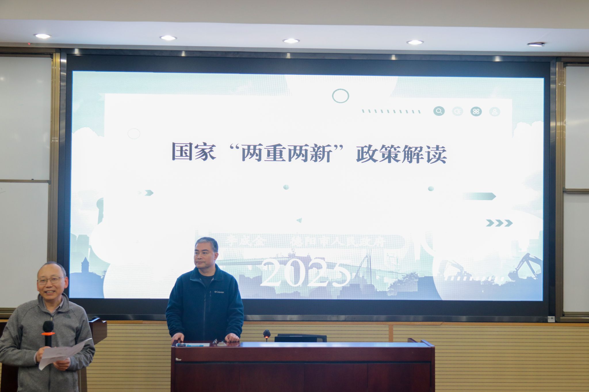 2025年4月12日上午,镜湖管理论坛第二期在英国上市365官网九里校区0号教学楼0212举行,学院邀请到德阳市政府原副市长李成金解读国家“两重两新”政策。学院党委书记郭强出席讲座,讲座由副院长李良主持。