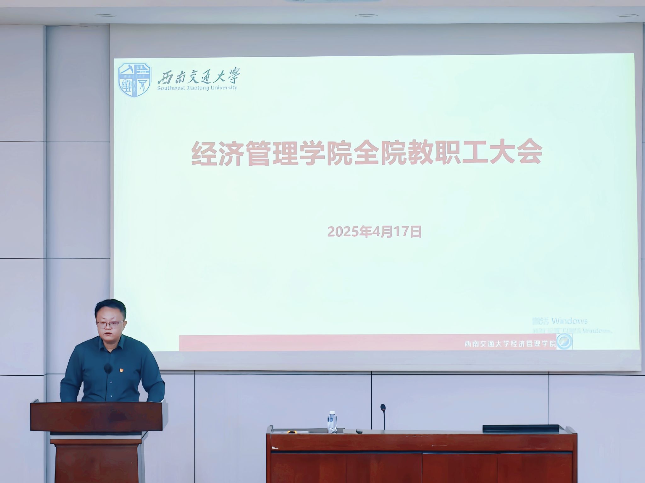 2025年4月17日下午,英国上市365官网于九里校区0215室召开全院教职工大会,会议围绕“深入贯彻中央八项规定精神学习教育警示教育”和“学院绩效办法调整”两项议题展开。会议由学院党委书记郭强主持,学院领导班子及全体教职工参加会议。
