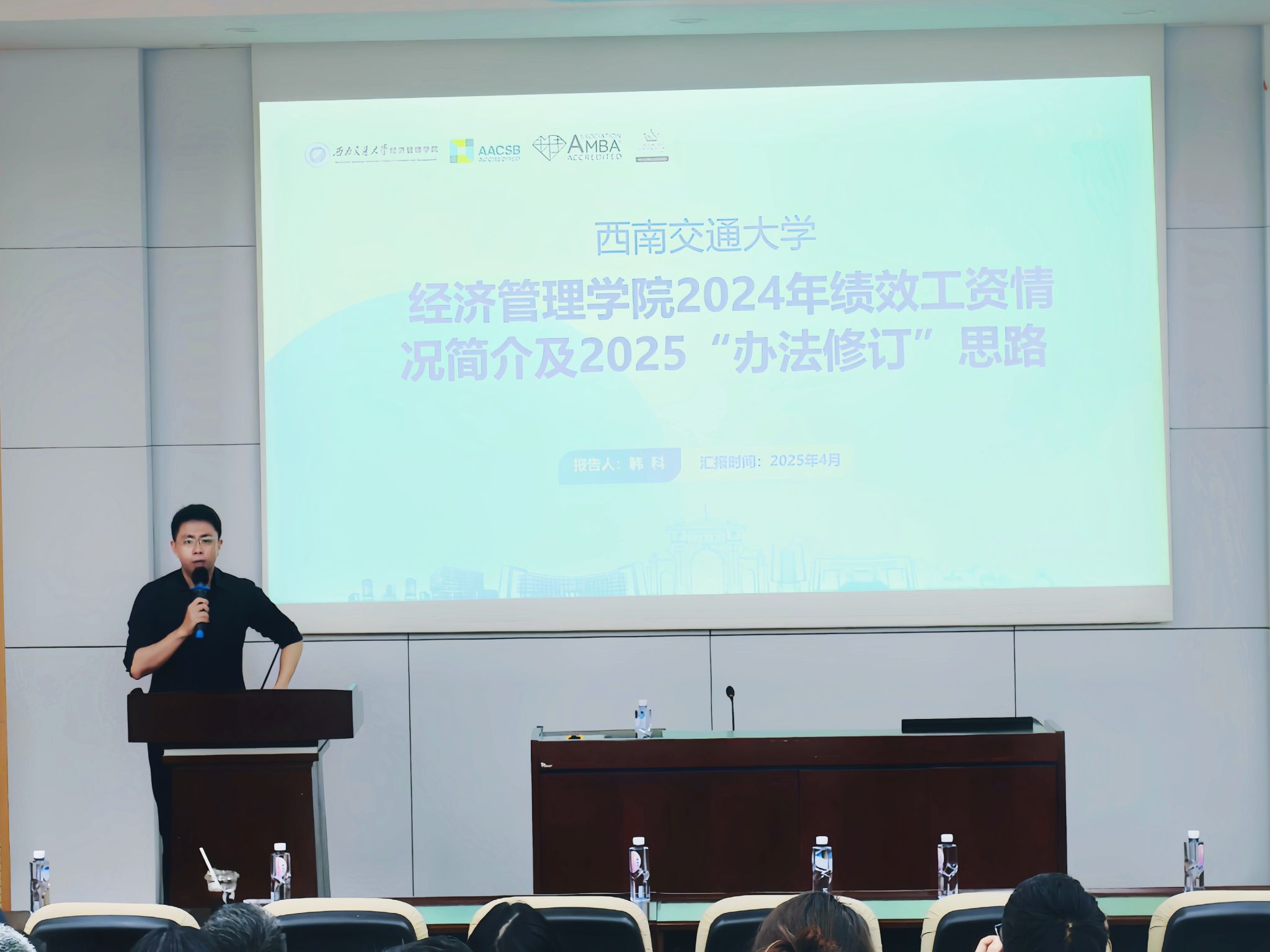 学院院长韩科就英国上市365官网2024年绩效工资情况及2025年修订思路进行详细说明。韩科对绩效办法修订的原则、具体措施及反馈机制作全面解读,全方位听取教职工的意见和建议。韩科指出,绩效办法修订关系教职工切身利益和学院长远发展,希望全体教职工统一思想、凝聚共识,共同推进学院治理体系不断完善。