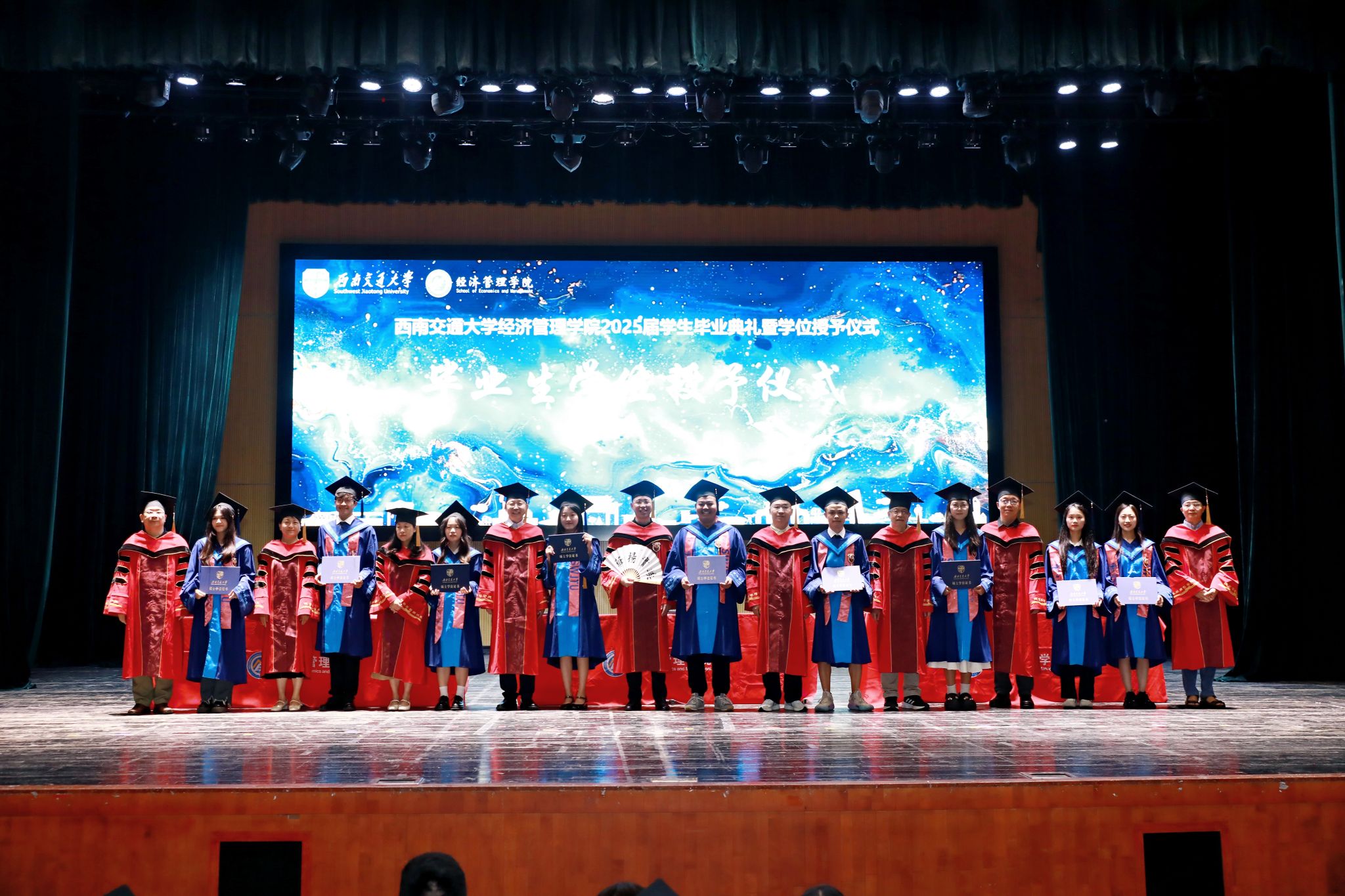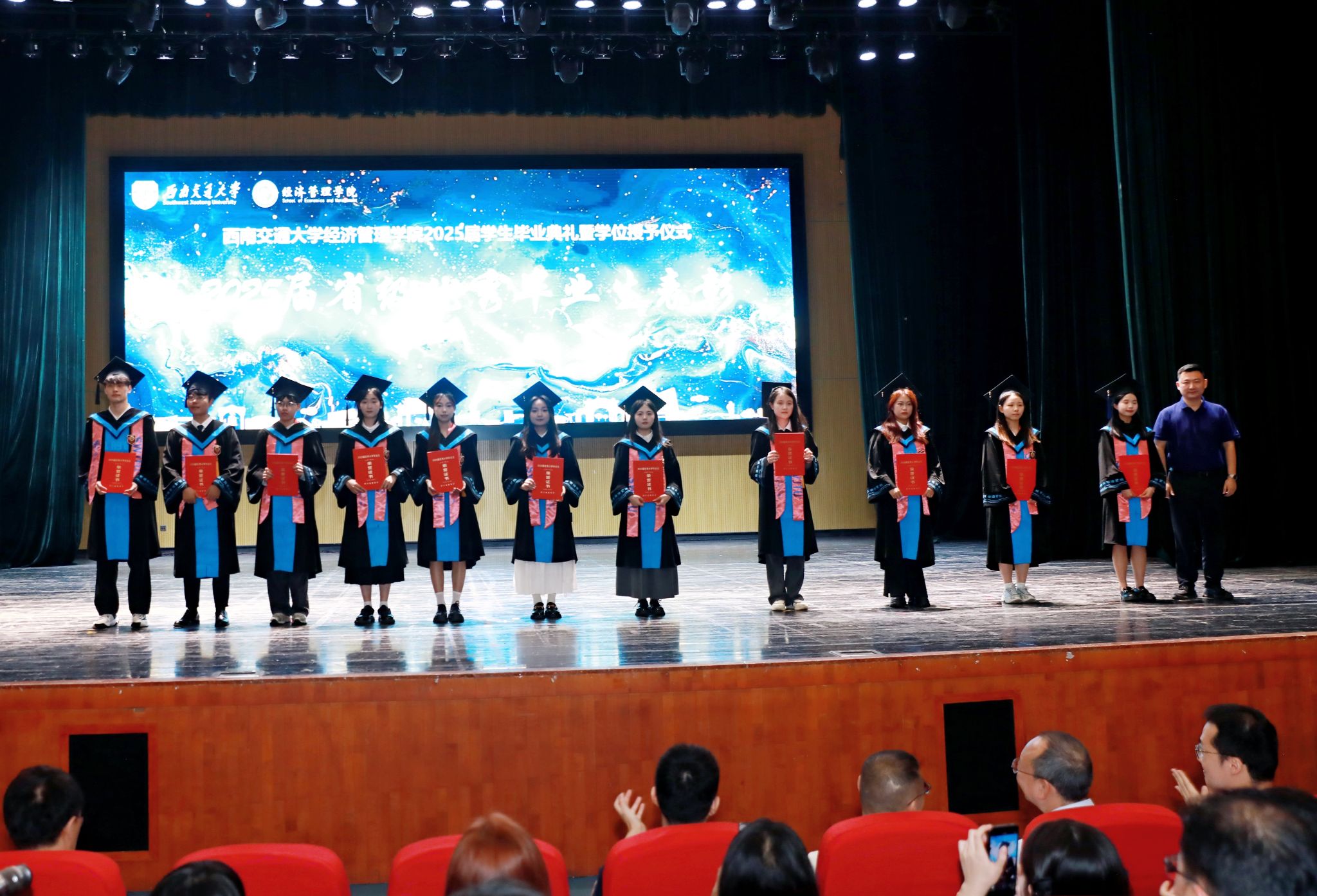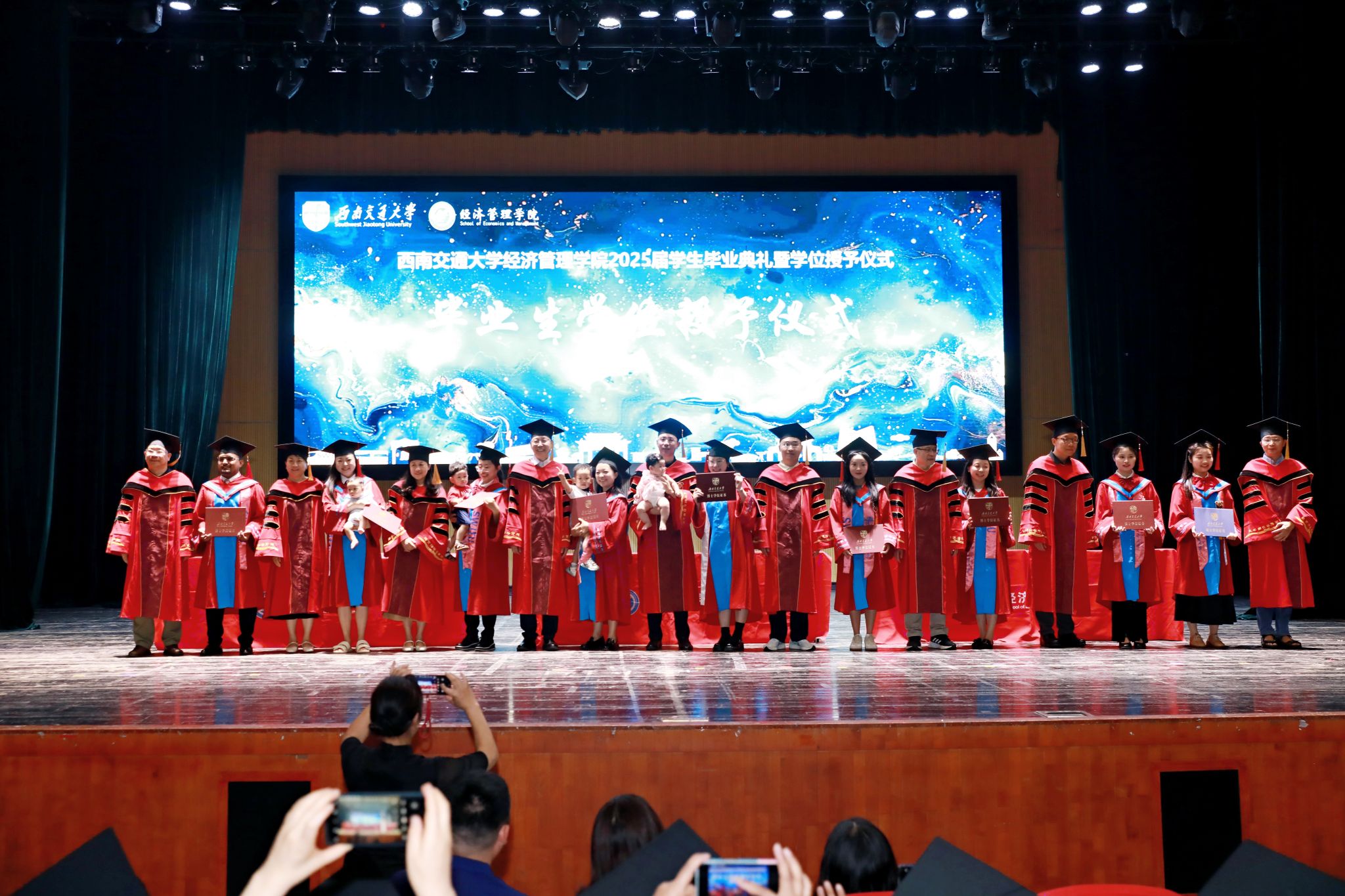 学院党委书记蒋佳宣读2025届本科生、2025届MBA毕业生院级荣誉获得者名单,学院副院长李良为获奖毕业生颁奖。院级获奖毕业生以勤勉为舟、以实干为桨,在专业学习、实践活动与集体建设中展现出卓越的综合素养。