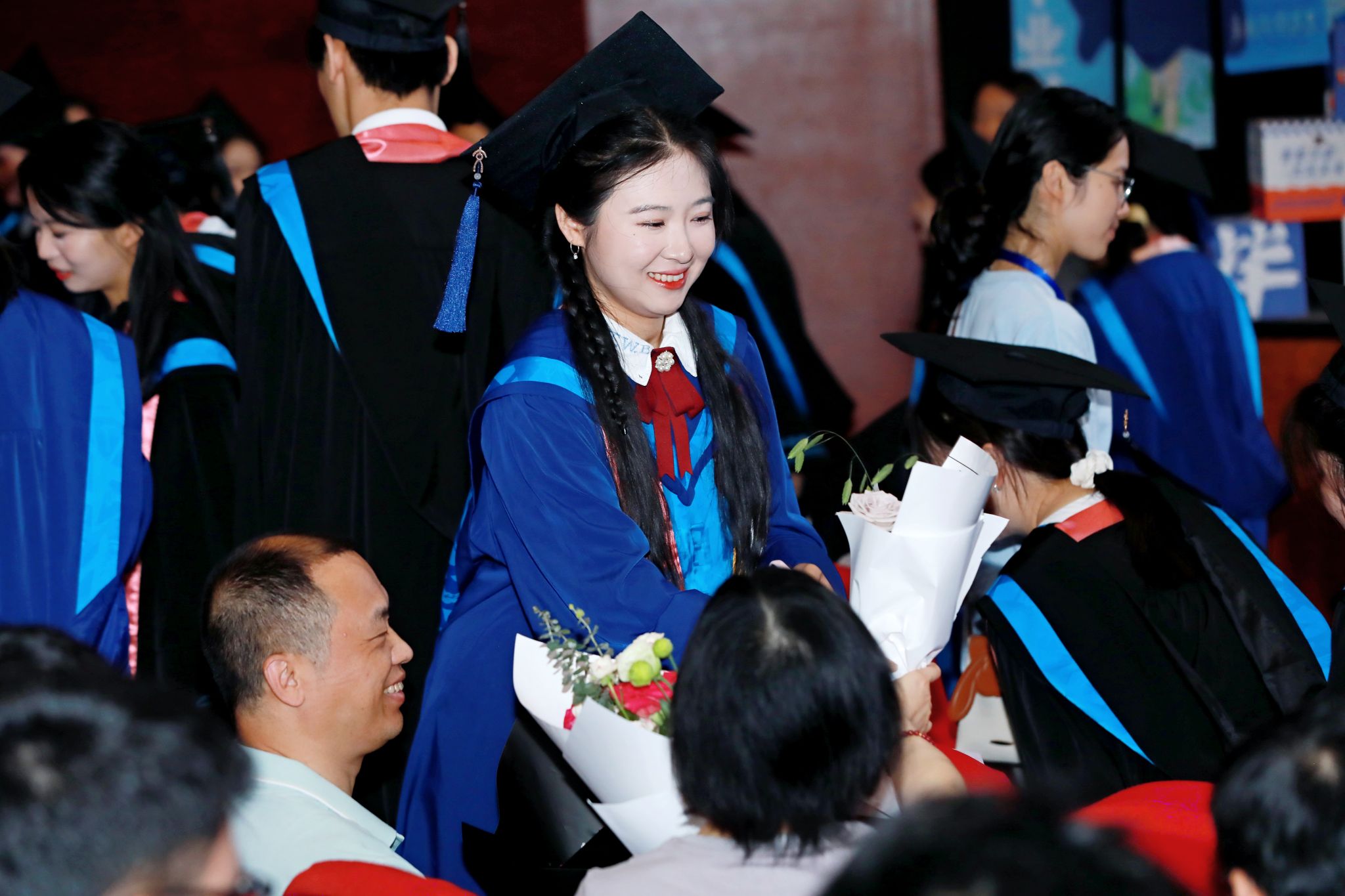 桃李不言,下自成蹊。毕业生们手捧鲜花,将花束轻轻递到老师们手中,对辛苦付出、悉心耕耘的老师们致以最崇高的敬意和最真挚的感谢,现场响起经久不息的掌声。