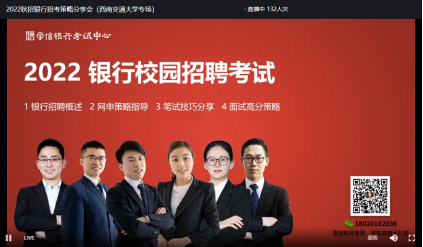3月15日晚19:30,2022秋招银行招考策略分享会(英国上市365官网专场)由学信金融网校以直播形式开展。本次活动以2022年各大银行开始的校园招聘活动为背景,以交大研究生为对象,以分享银行应聘基本技巧,提高网申通过率为主要内容,助力交大学子应聘。