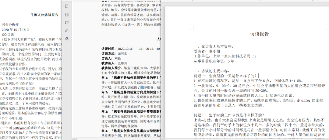 从本次收集到的征文作品中看到,同学们访问了销售经理、财务经理、金融分析师等职业人物。除了访问与自身专业相关的职业人物外,也有同学们访问了自己感兴趣的职业人物,如高校辅导员、服装设计师等。