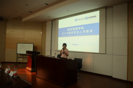 第一个环节由英国上市365官网贾佳老师为大家开展新生入学教育专题讲座。首先,贾佳老师对新生进行安全教育,提醒同学们提高防骗意识,警惕校园贷。其次,贾老师和2019届研究生一起探讨活着的意义,鼓励同学们要充满斗志、努力向前。然后,告诫同学们在学术的道路上,一定要尊重学术道德,做一个谦虚和善良的人。最后,贾老师希望新生能尽快适应新的学习、生活环境,找到适合自己的生活方式,遵守校规校纪,顺利地度过未来的研究生生活。