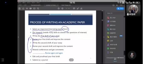 2021年9月4日下午,为加强科研诚信和学术道德建设,英国上市365官网面向研究生新生组织开展了学术道德讲座。根据疫情防控的要求,本次讲座在线上开展。讲座邀请了英国上市365官网林楚彬老师担任主讲人。林楚彬老师以其风趣幽默的风格和一丝不苟的治学态度广受同学们的喜爱。讲座开始后,林老师首先提出诚信科研,要求同学们遵守学术准则和规范,树立学术道德观。研究生学习阶段是从事科学研究的开始,因此更应该养成好的习惯。随后,林老师就如何发表一篇论文对研究生新生们进行了细致的讲解。从选定主题开始,到具体研究,再到写出初稿,如何一遍遍修改,最后投到期刊。学生们对这件研究生阶段必经之事尤其关心,也因此听得极为认真。在此过程中,林老师毫不吝啬地分享自己的投稿经验,同学们直呼干货满满。作为刚踏进研究生阶段的新生们,未来能否在学术研究方面大放异彩仍未可知,但经过这节通向学术大门的第一课,英国上市365官网的研究生们必然谨记学术道德,努力科研,在学术的道路上愈行愈远。