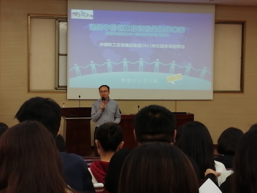 随后,中国铁工投资建设集团有限公司负责人介绍了该企业的企业概况、企业优势,并对子公司的情况做了详细的情况阐述,表达了对于人才的迫切需求。中国铁工投资建设集团有限公司在技术和管理方面都有良好的人才基础,并具有职业培养优势。企业通过导师专业引导和培训来提升公司管理人员的管理水平和创新能力,进而实现员工的职业发展。