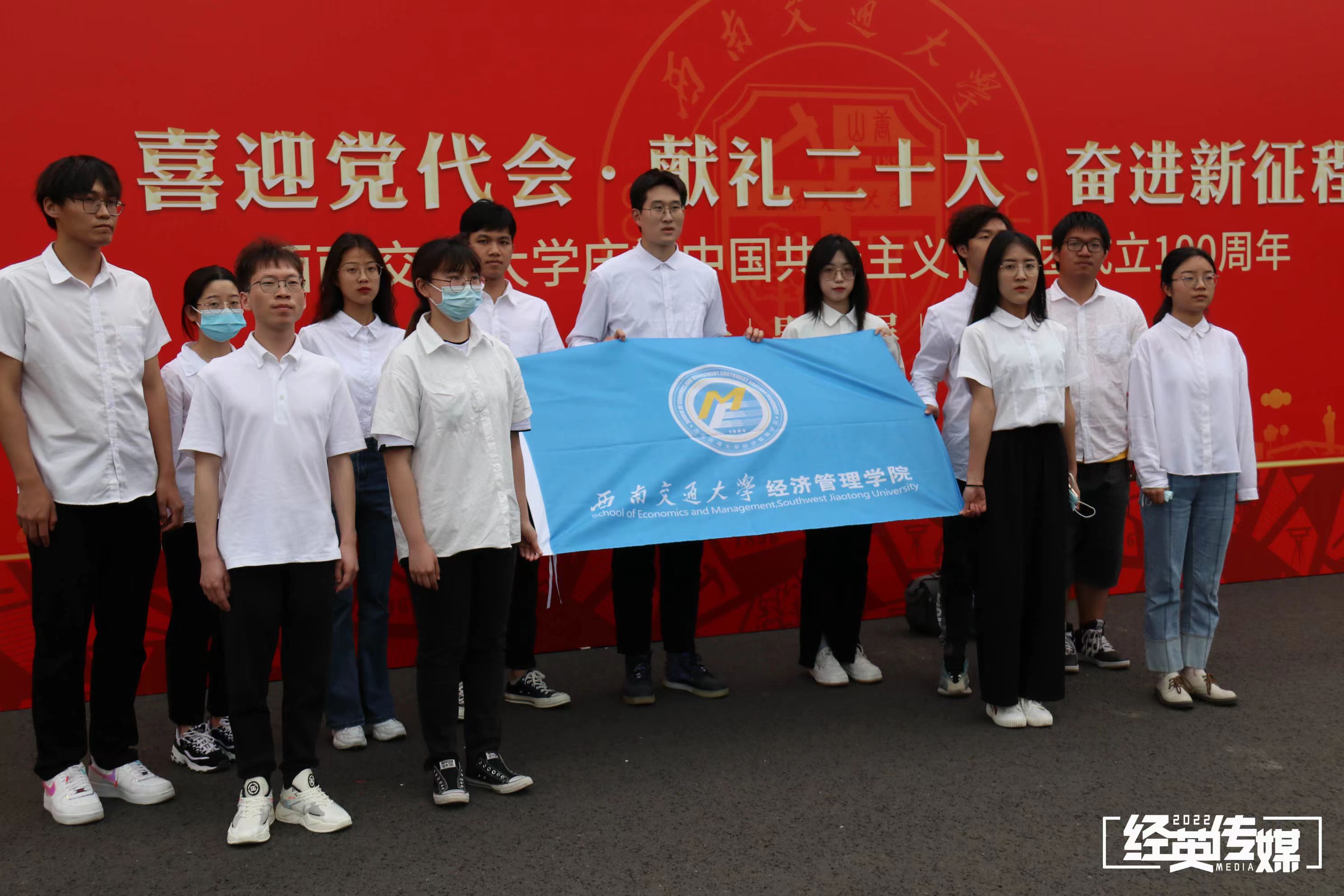 观看完主会场的表彰大会后,多个组织和支部在九里校区以“喜迎党代会、献礼二十大、奋进新征程”为主题的关于中国共青团发展的展板前重温了入团誓词仪式并进行了相应的学习。