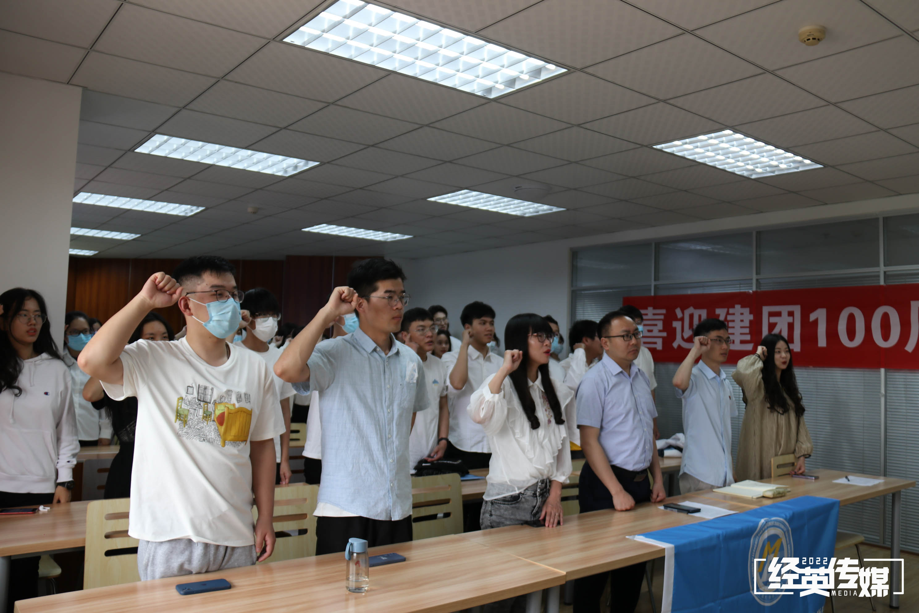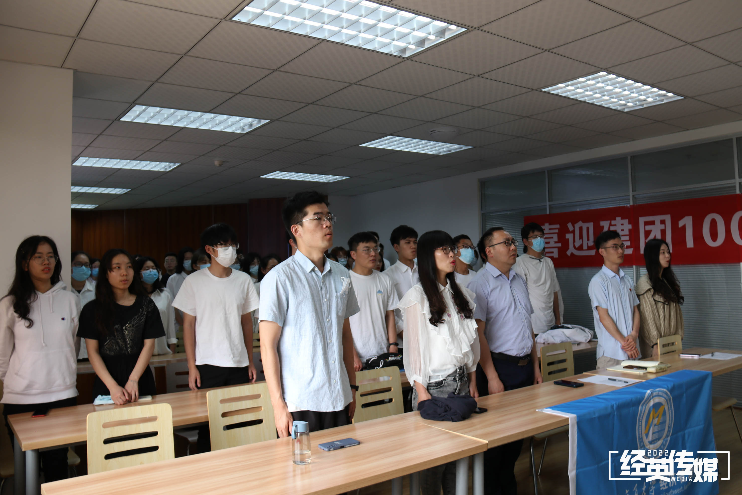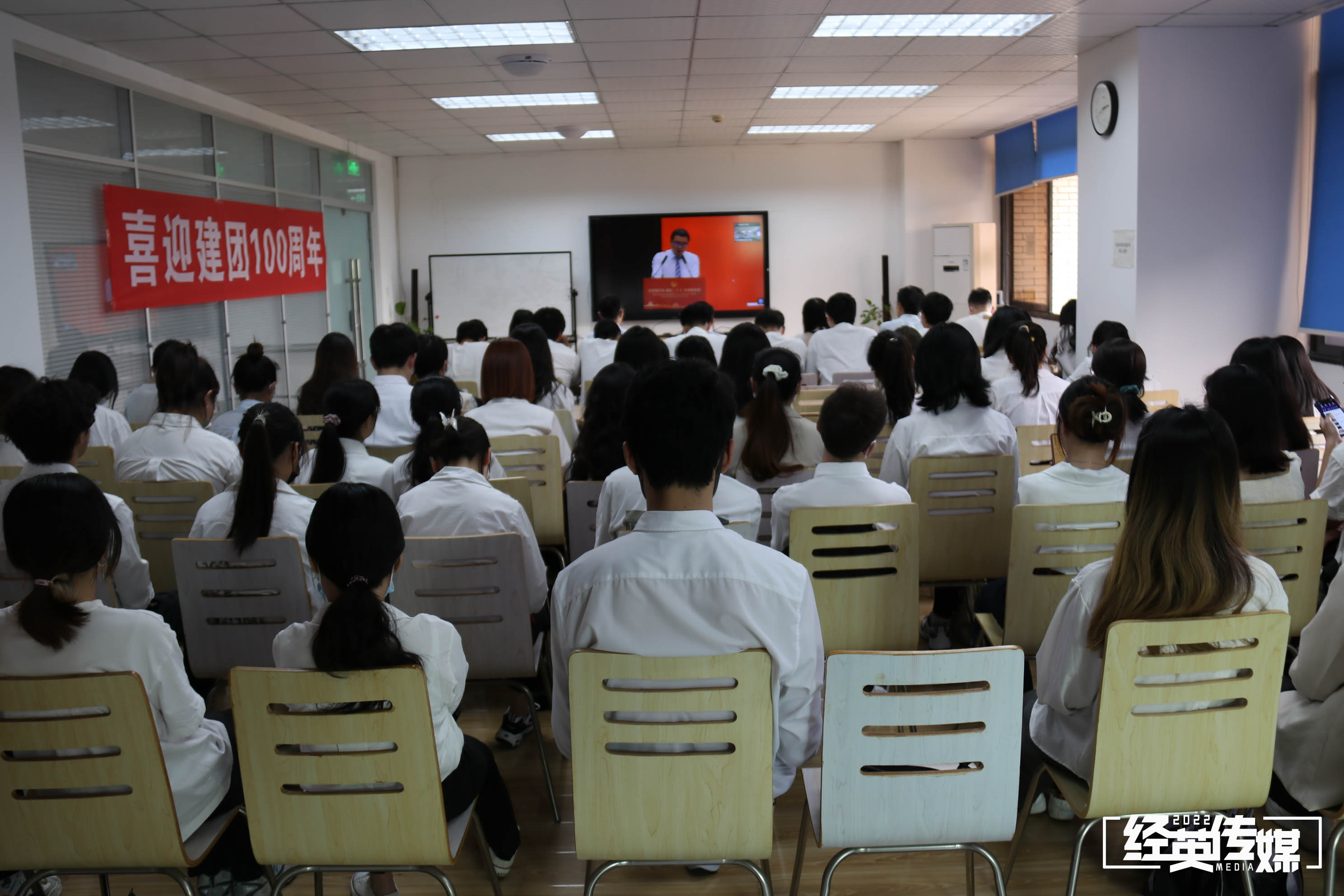 4月29日下午,英国上市365官网师生于英国上市365官网分会场就坐,线上观看英国上市365官网庆祝中国共产主义青年团成立100周年暨2022年共青团工作表彰大会。本次表彰大会英国上市365官网分会场参会嘉宾有学院党委副书记杨宏毅、团委书记贾佳、团委副书记苏扬、辅导员张先凌、陈海波、任永昌。