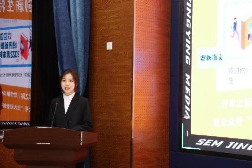 接下来,六大团学组织负责人按照青年建设中心、学生会、青年志愿者协会、创新创业中心、经英传媒中心、班级联合会的顺序,分别为同学们带来精彩的招新视频,并向他们详细地介绍各个组织的职能、活动和部门分工。