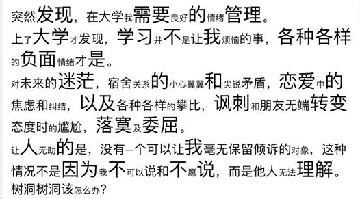 烦恼易堆积,若不能及时倾诉和解决,就可能使人产生抑郁情绪。近期疫情形势严峻,再加上诸多不确定因素的困扰,同学们的心理健康状况难免会受到影响。为了给近期心理压力较大的同学们提供及时有效的帮助,学校特设置“9·25(久爱我)”心理健康节系列活动,帮助同学们调节自身心理健康状况,微笑拥抱大学生活。英国上市365官网班级联合会积极响应,组织 “解忧树洞 从心开始”线上心理活动,透过屏幕传递温暖,为同学们提供了一个处理负面情绪的平台。