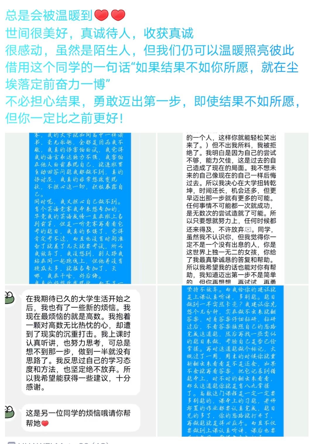 大部分同学都热心地为他人解决烦恼,字里行间流露着真情与关切: