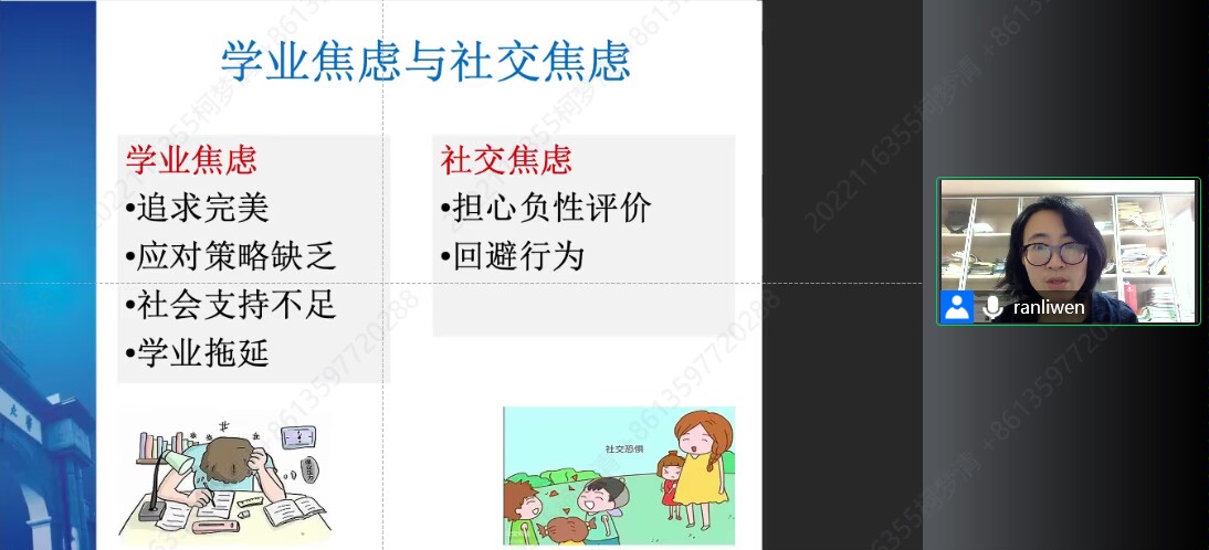 首先,心理研究与咨询中心冉俐雯向家长们介绍了如今大学生心理健康现状以及抑郁症、焦虑症等常见的心理障碍,让家长们对大学生的心理健康有了更清晰的认知,随后又提出了心理危机的预防策略。通过冉老师的发言,家长们了解到英国上市365官网有齐全的心理疏导机构和经验丰富的心理咨询老师,为同学们的心理健康保驾护航,帮助同学们顺利地适应大学生活。