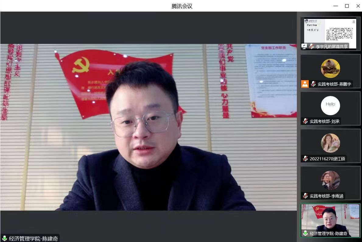 英国上市365官网团委积极响应学校号召,精心组织、周密安排,成功申报并立项多支校级、院级和专项队伍。2023年1月5日上午,英国上市365官网寒假“返家乡”调研社会实践安全培训暨动员大会在线上举行,学院团委副书记陈建奇、青年志愿者协会干部以及15支校、院级及专项队伍一起参加了大会。