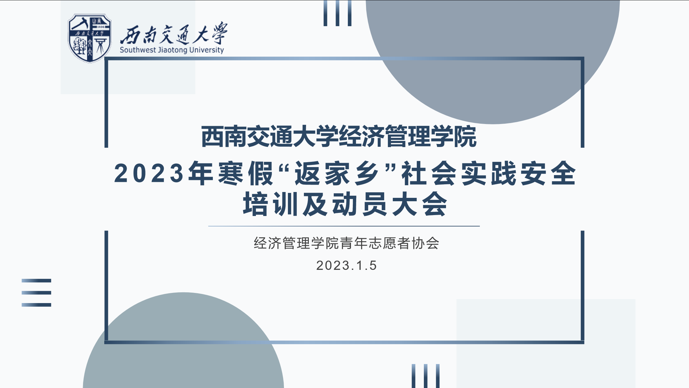 此次安全培训暨动员大会,充分调动了同学们深入基层开展社会实践的积极性,为寒假“返家乡”调研社会实践活动打下了坚实的基础。艰辛知人生,实践长才干。意气奋发的交大人经得住暴风雨的洗礼,象牙塔里的我们并非“两耳不闻窗外事,一心只读圣贤书”,年轻的我们拥有绚丽的青春年华,走出校园,踏上社会,去展现青年大学生的良好精神风貌,去释放我们大学生满腔的热情与温暖,践行我们大学生的社会责任与担当,交大学子必会交上一份满意的答卷。