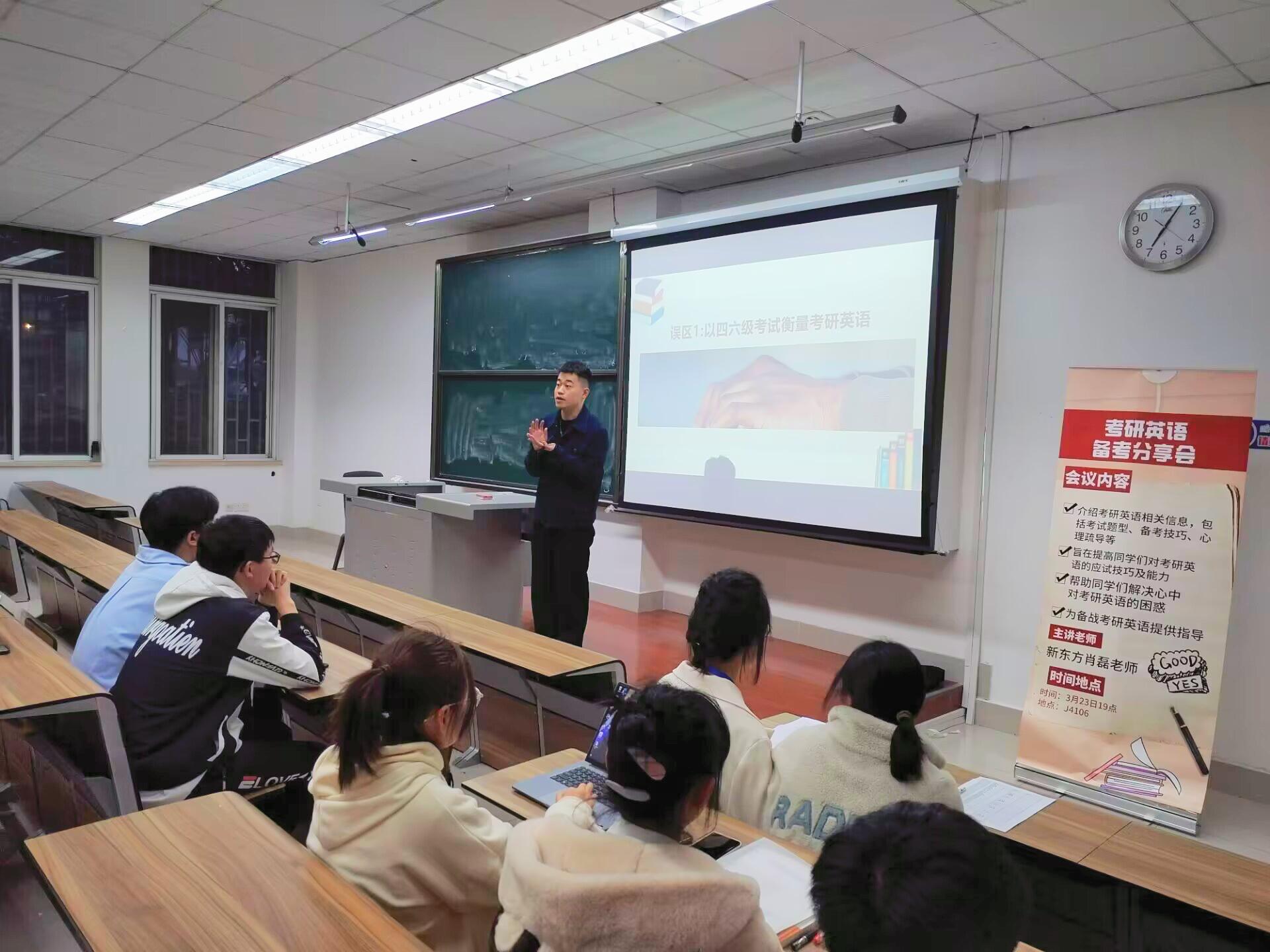 2023年3月23日,英国上市365官网邀请了新东方的肖磊老师带来考研英语备考分享会。肖磊老师梳理了备考英语的时间线,帮助同学们制定合理的复习计划。4月13日,英国上市365官网邀请了中公教育的梁萧老师开展考研择校择专业讲座。梁萧老师分析了如何选择适合的备考院校和专业,帮助同学们解决了心中对考研择校择专业的困惑。