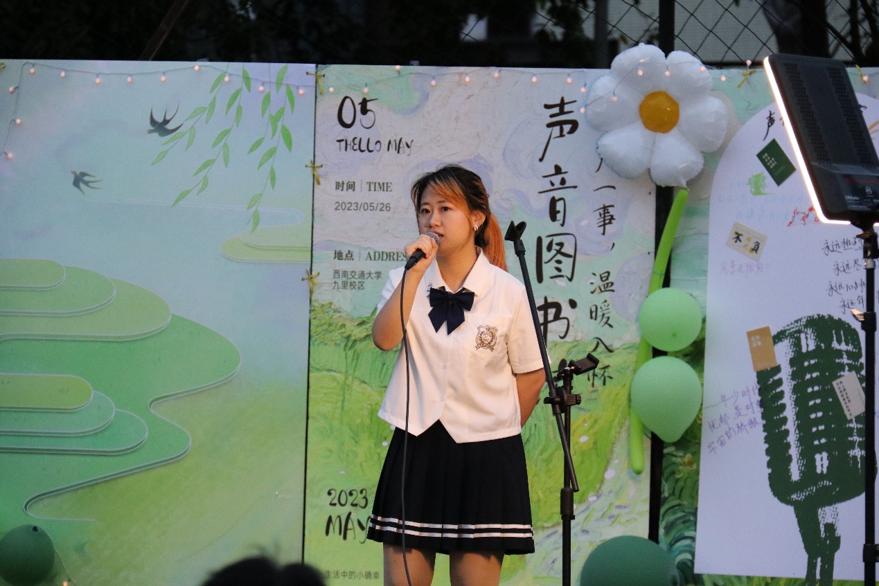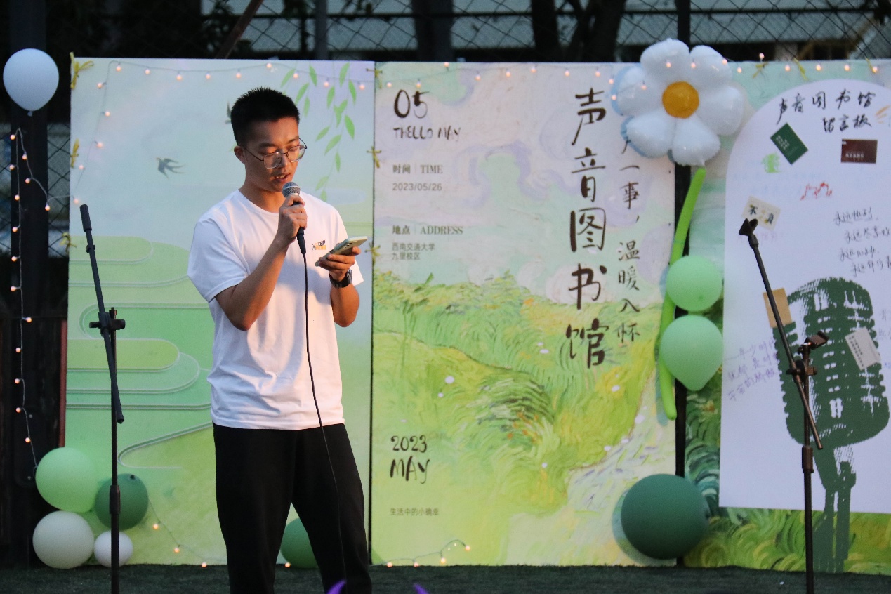 6月2日晚,由校团委主办,英国上市365官网承办的英国上市365官网2023年度“声音图书馆”决赛在九里校区田径场顺利举办。英国上市365官网党委副书记杨宏毅、交大之声广播台台长张嘉文、英国上市365官网学生工作组辅导员老师和部分学生代表参加了此次活动。