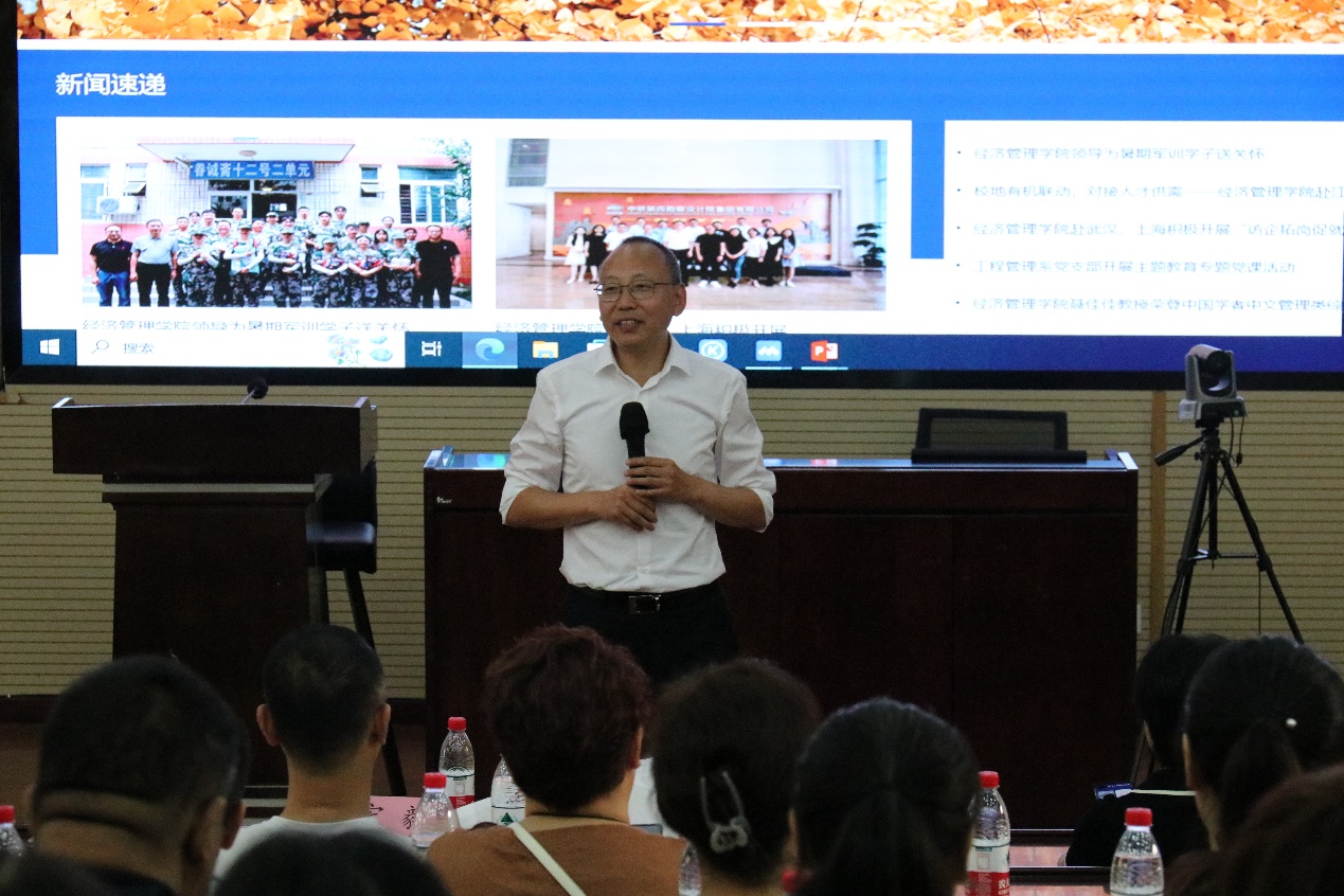 随后,杨宏毅对学生工作情况进行了介绍,从学校历史、学院基本情况、学生工作组的组成和工作职责、家长注意事项等方面展开。其中,他强调家长应注意孩子学习和生活方面的适应状况,并对安全事项做出重要提醒。为了让家长更贴近孩子的大学生活,杨宏毅老师介绍了校、院常用的官方网站和网络媒体,站在老师的角度,为大学生的未来规划提出建议。