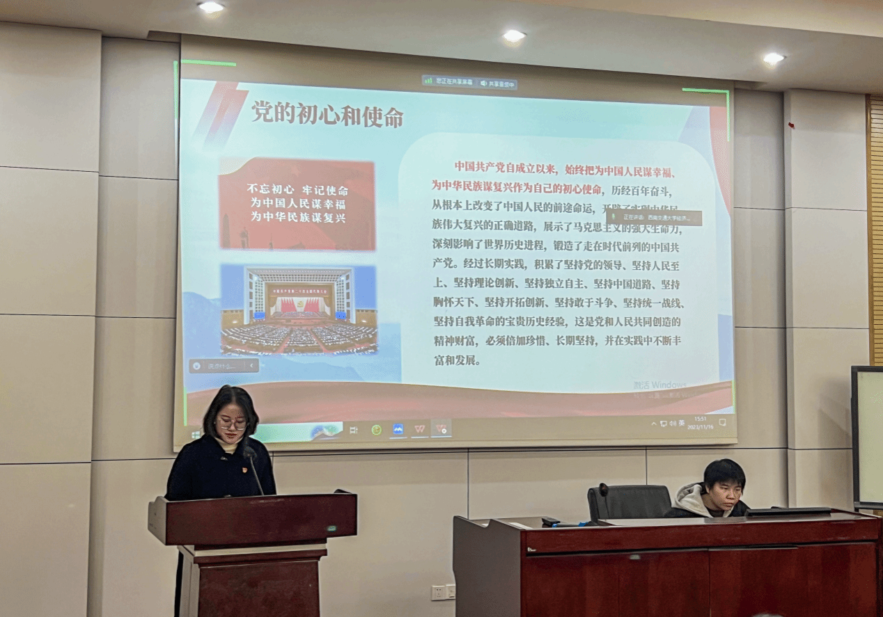 最后,英国上市365官网本科第四党支部书记张先凌老师总结发言,她希望将来各党支部间也能有更多的共建与交流,互促共进。张老师指出,当代青年的人生黄金期与实现第二个百年奋斗目标的伟大征程完整契合,有着难得的人生际遇,是实现民族复兴的有生力量。希望各位同志在以中国式现代化全面推进中华民族伟大复兴的新征程上要心怀“国之大者”,矢志砥砺奋斗,锤炼品格修为,把自己的小我成长融入祖国的大事业中去,在扎根基层、助力乡村振兴乃至各行各业,把党员的先锋模范作用发挥在方方面面,在各领域工作中争当排头兵和生力军,奉献自我,展现青春的朝气锐气。