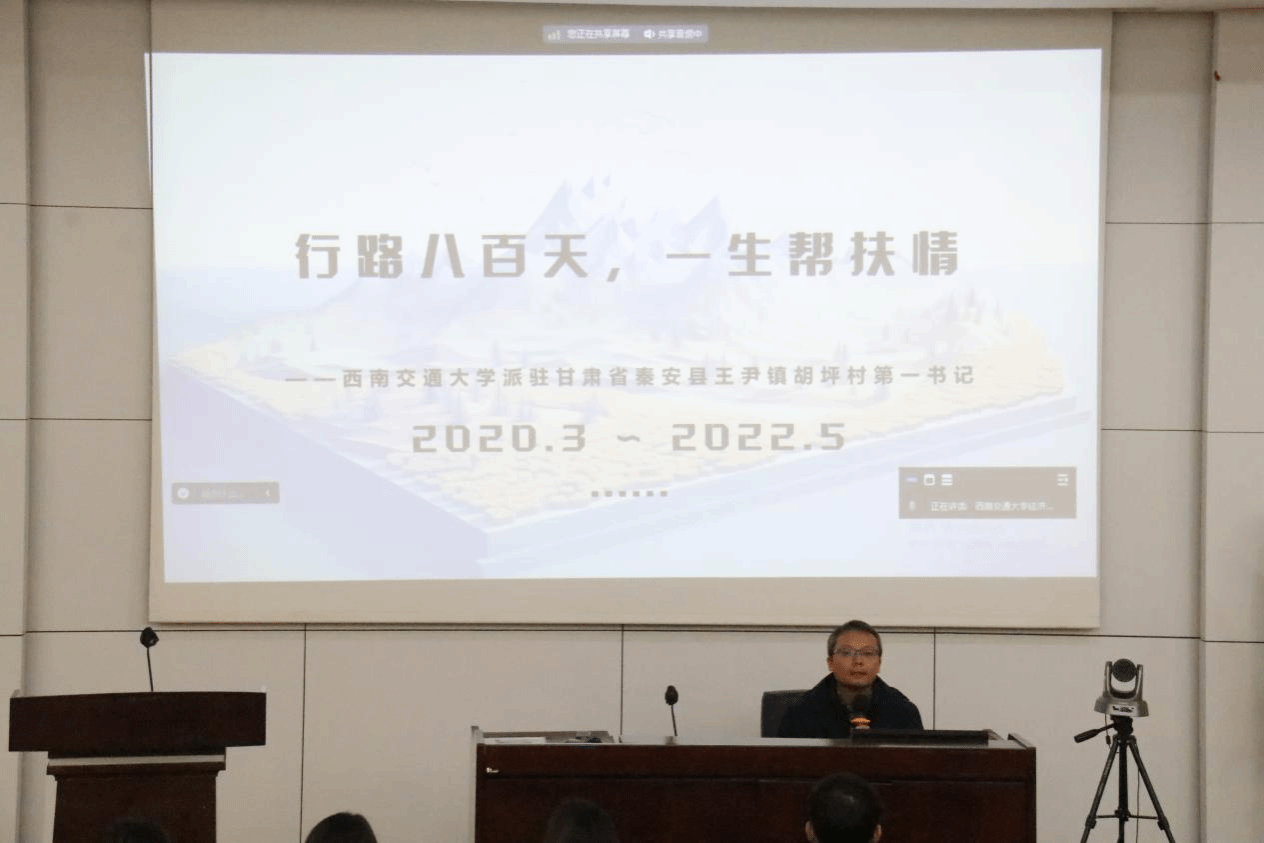 助力扶贫事业,兜底群众难事。英国上市365官网机关第一党支部书记何鹏老师带来了他在甘肃省秦安县的两年驻村帮扶经历分享。行路八百天,一生帮扶情。2020年,何鹏老师带着助力脱贫攻坚收官之战的重担赴陇上任。因饮食习惯差异带来的不适、与成都截然不同的气候、自己一窍不通的西北方言都给何老师的工作带来了不小的挑战,在两年的时间里,何老师不断攻克难关,深深扎根基层,走访调研全村居民,扎实推动党建、脱贫攻坚、巩固拓展脱贫攻坚成果同乡村振兴有效衔接、人居环境整治、疫情防控等地方重点工作,并完善乡村产业链,改善基础设施建设,开展基础教育帮扶,通过多方资源引入了帮扶资金项目数百万元。何老师向同学们分享了他对于基层工作的认识与感悟,也鼓舞同志们树立长远目标,到基层的大舞台施展才干。