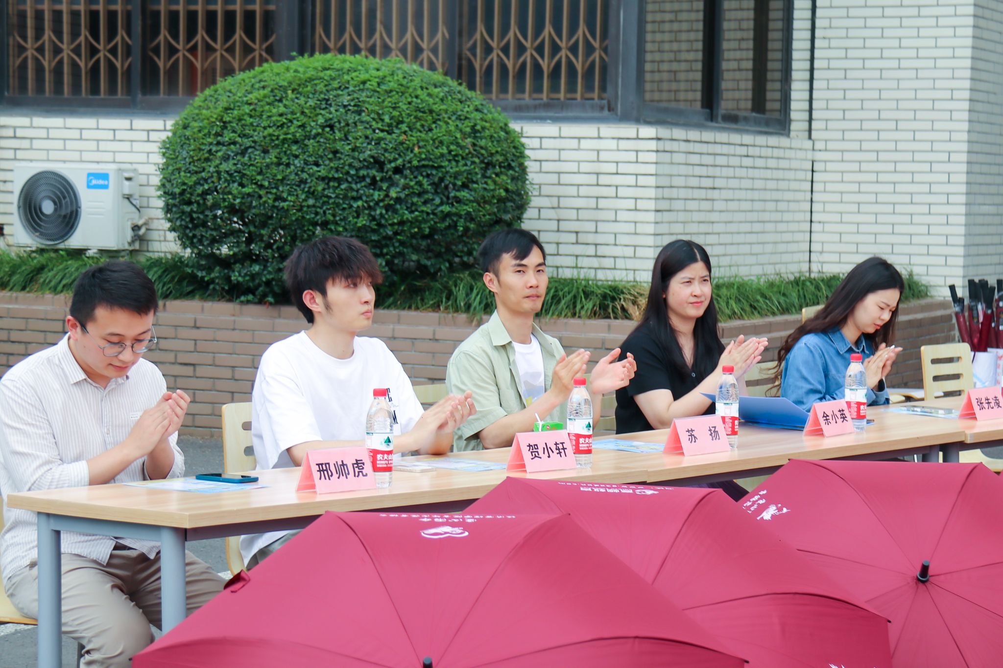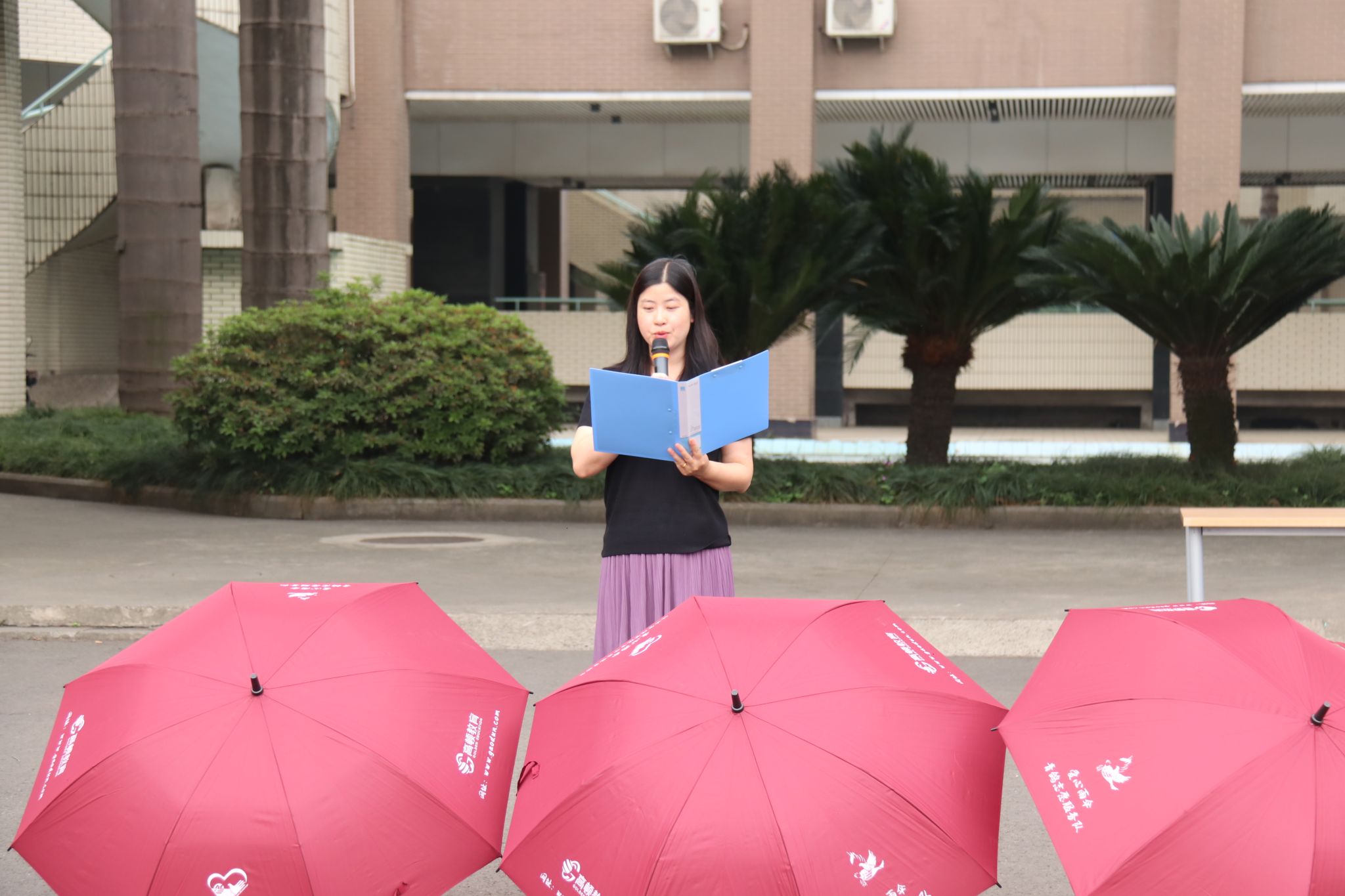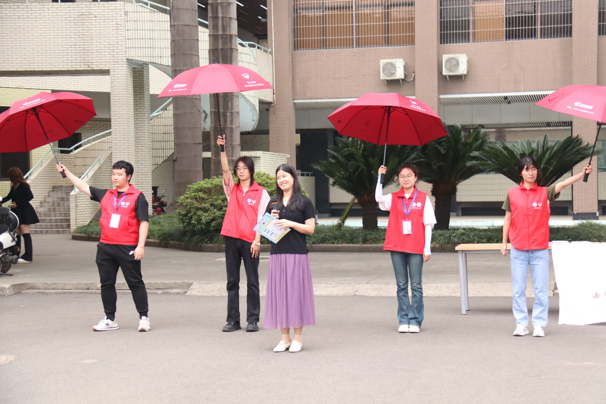 下午14:50,随着志愿者撑开象征着爱心与温暖的红色雨伞,余小英宣布爱心雨伞活动正式启动。