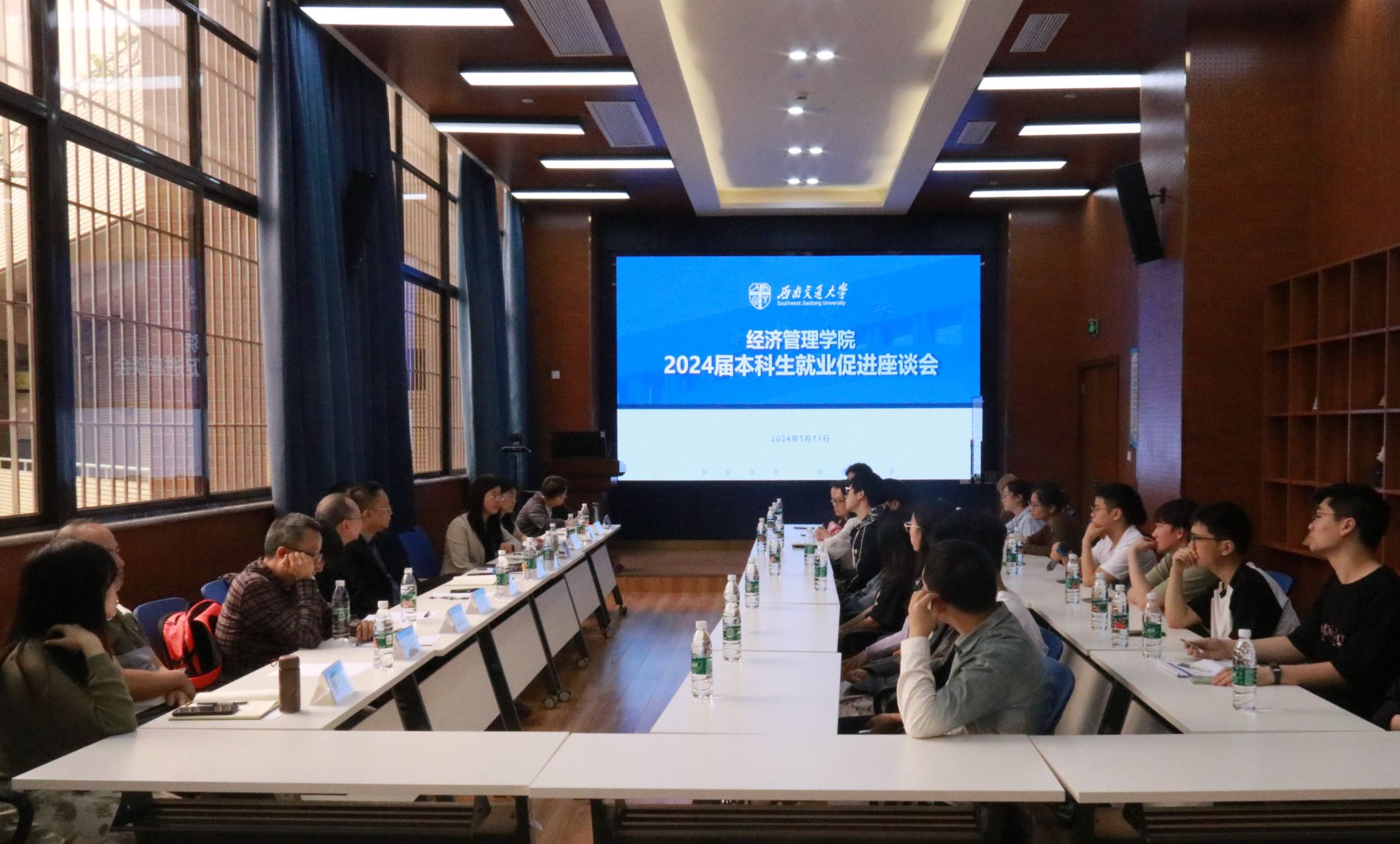 2024年5月11日上午10:00,英国上市365官网2024届本科生就业促进座谈会在0218召开。学院党委书记郭强、院长韩科、党委副书记余小英、副院长李良、各专业负责老师、2020级本科辅导员及毕业生代表参加了座谈会。会议由余小英主持。