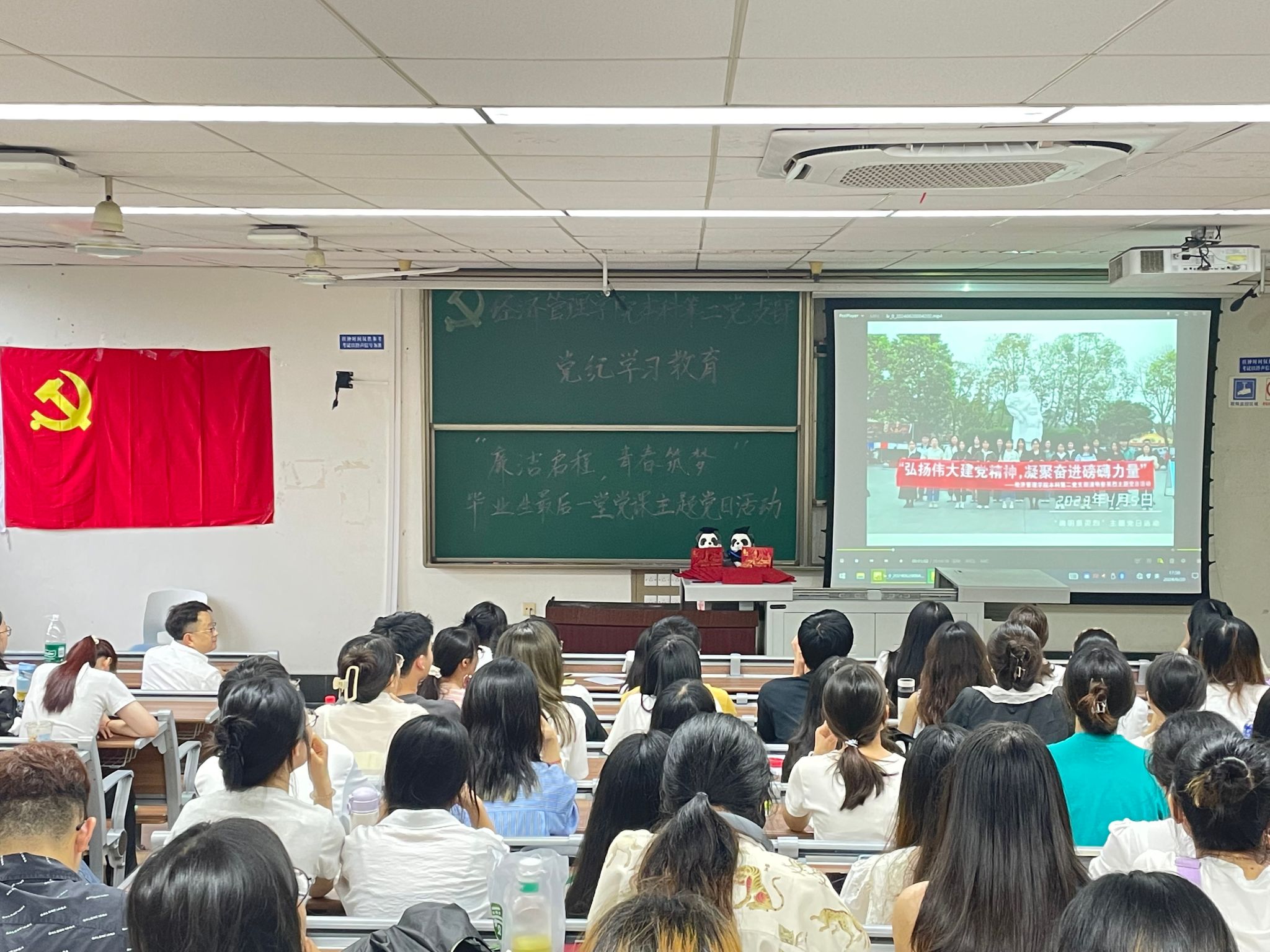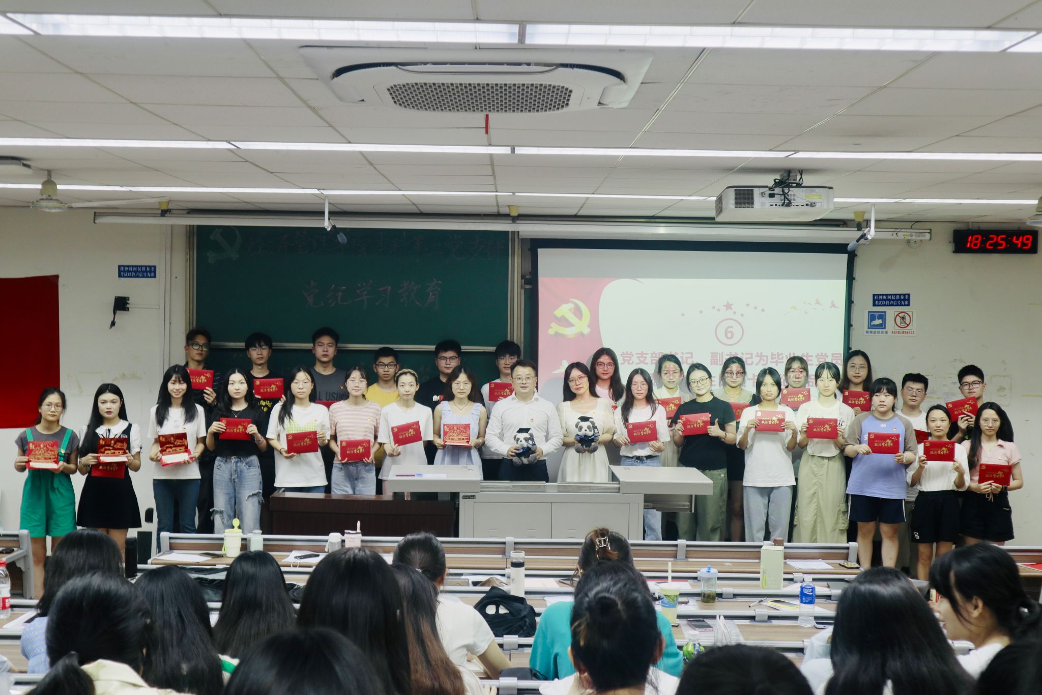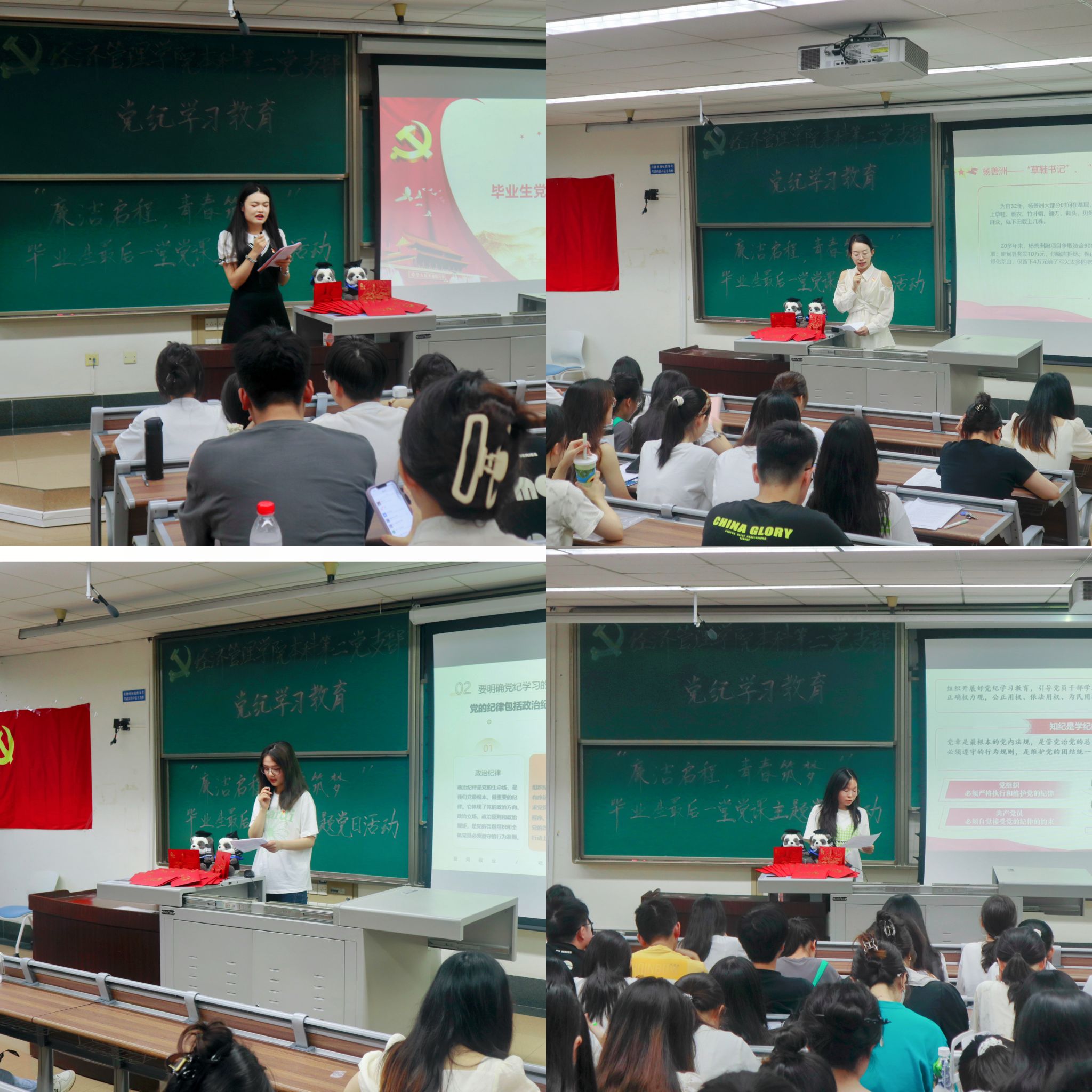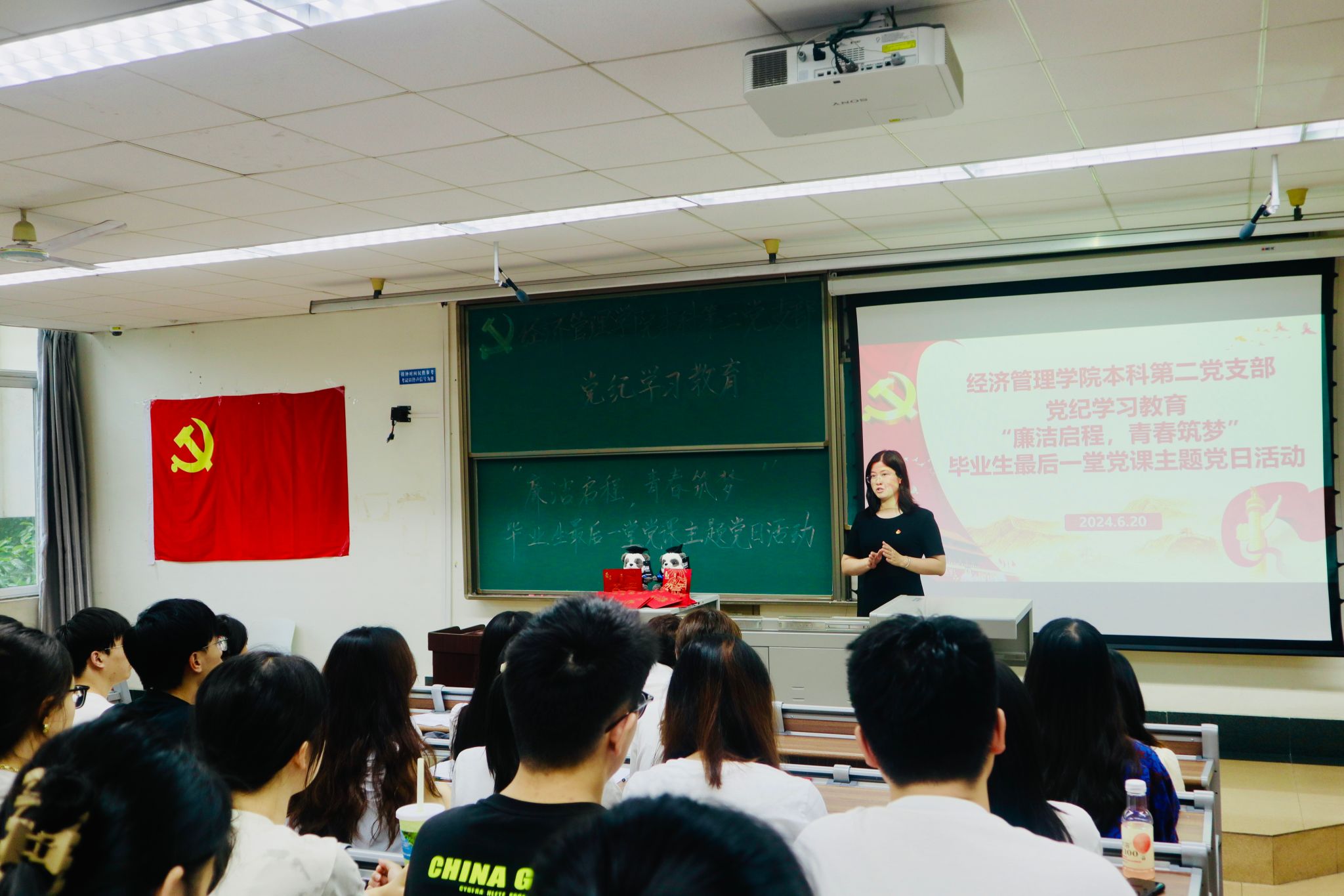 为深入学习贯彻习近平新时代中国特色社会主义思想和党的二十大精神,开展好党纪学习教育,进一步增强毕业生党员的党性意识和社会责任感,6月20日,英国上市365官网本科第二党支部于J4310开展党纪学习教育——“廉洁启程,青春筑梦”毕业生最后一堂党课主题党日活动。