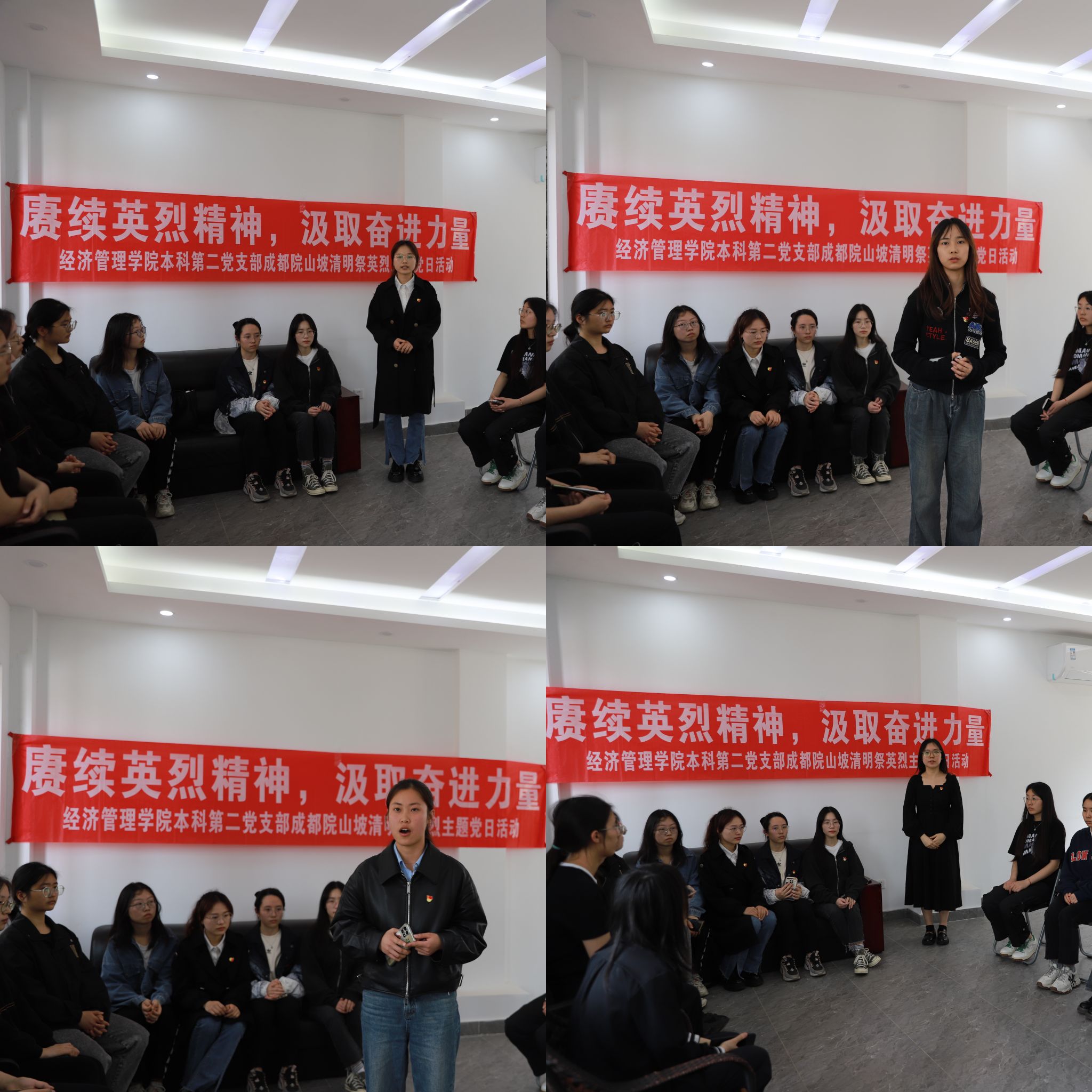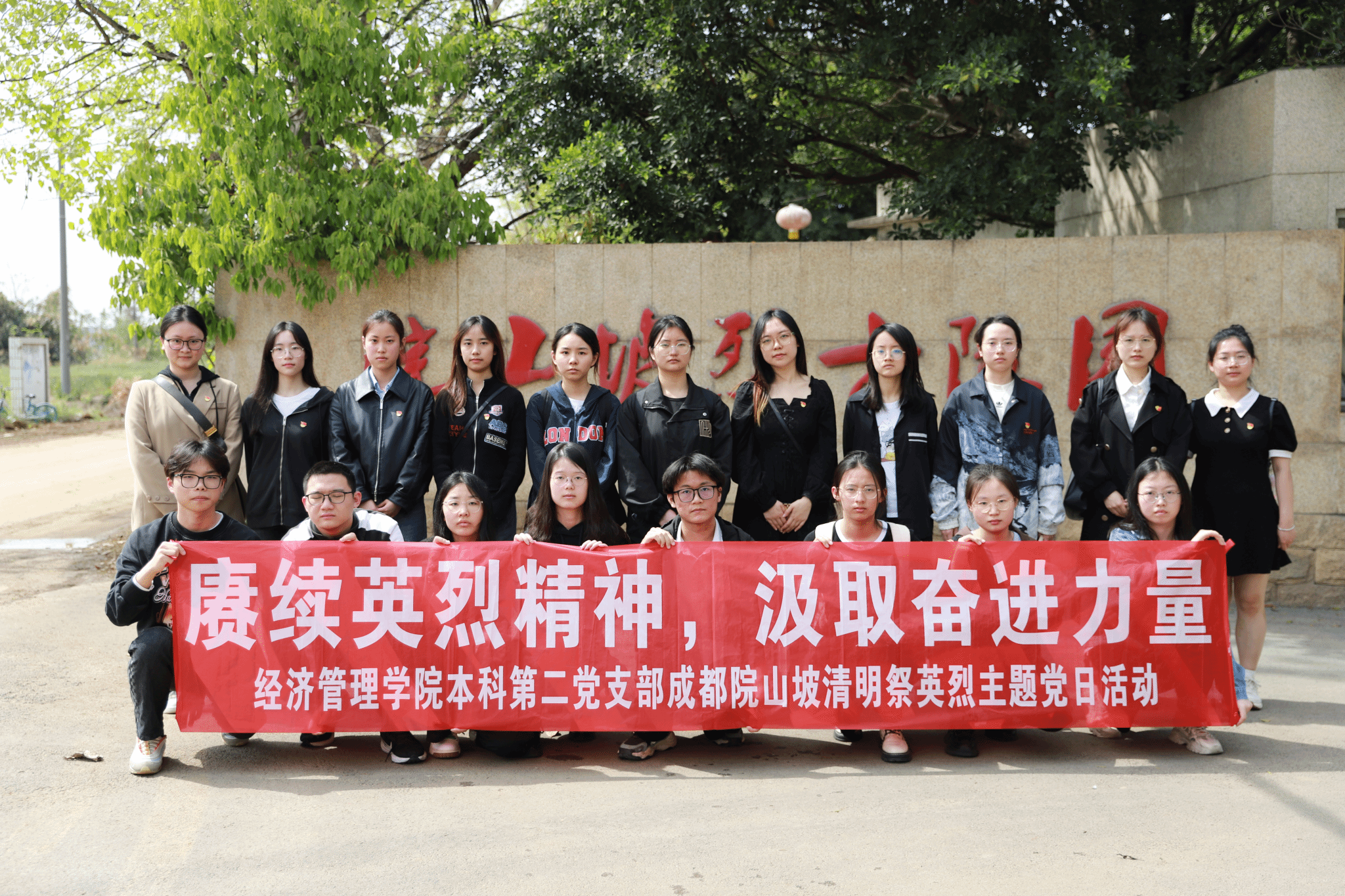 春风拂陵草青青,英雄浩气贯长空。在万物生长、春意盎然的美好时节,“清明”提醒我们停下脚步、驻足回望。“清明”不仅是遥寄相思,缅怀先祖的日子;更是追思英烈忠魂,回首国家艰辛来路的重要载体。为深刻缅怀革命先烈,赓续红色血脉,汲取奋进力量,4月4日,英国上市365官网本科第二党支部组织党员和入党积极分子前往成都市院山坡烈士陵园开展“赓续英烈精神,汲取奋进力量”清明祭英烈主题党日活动。