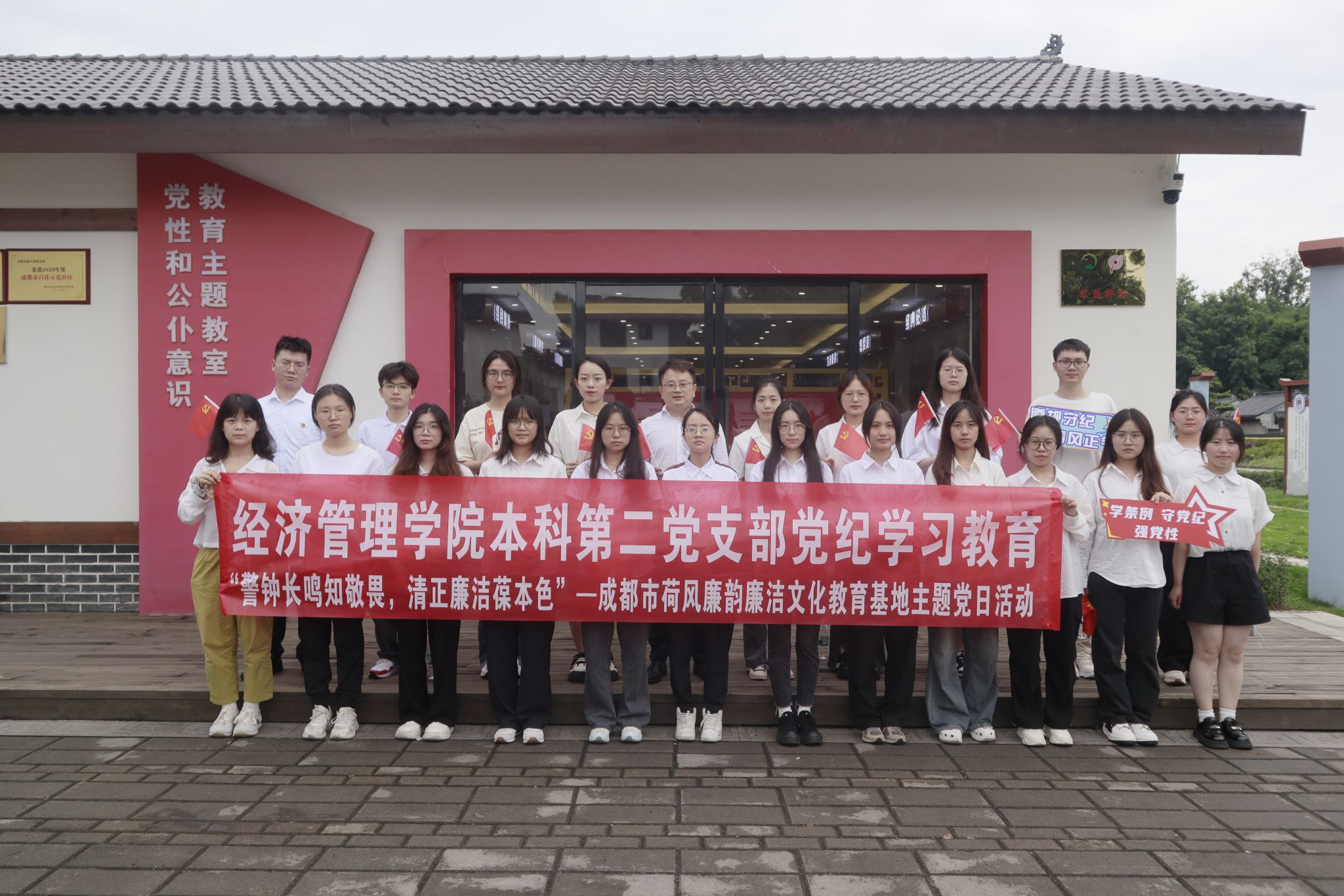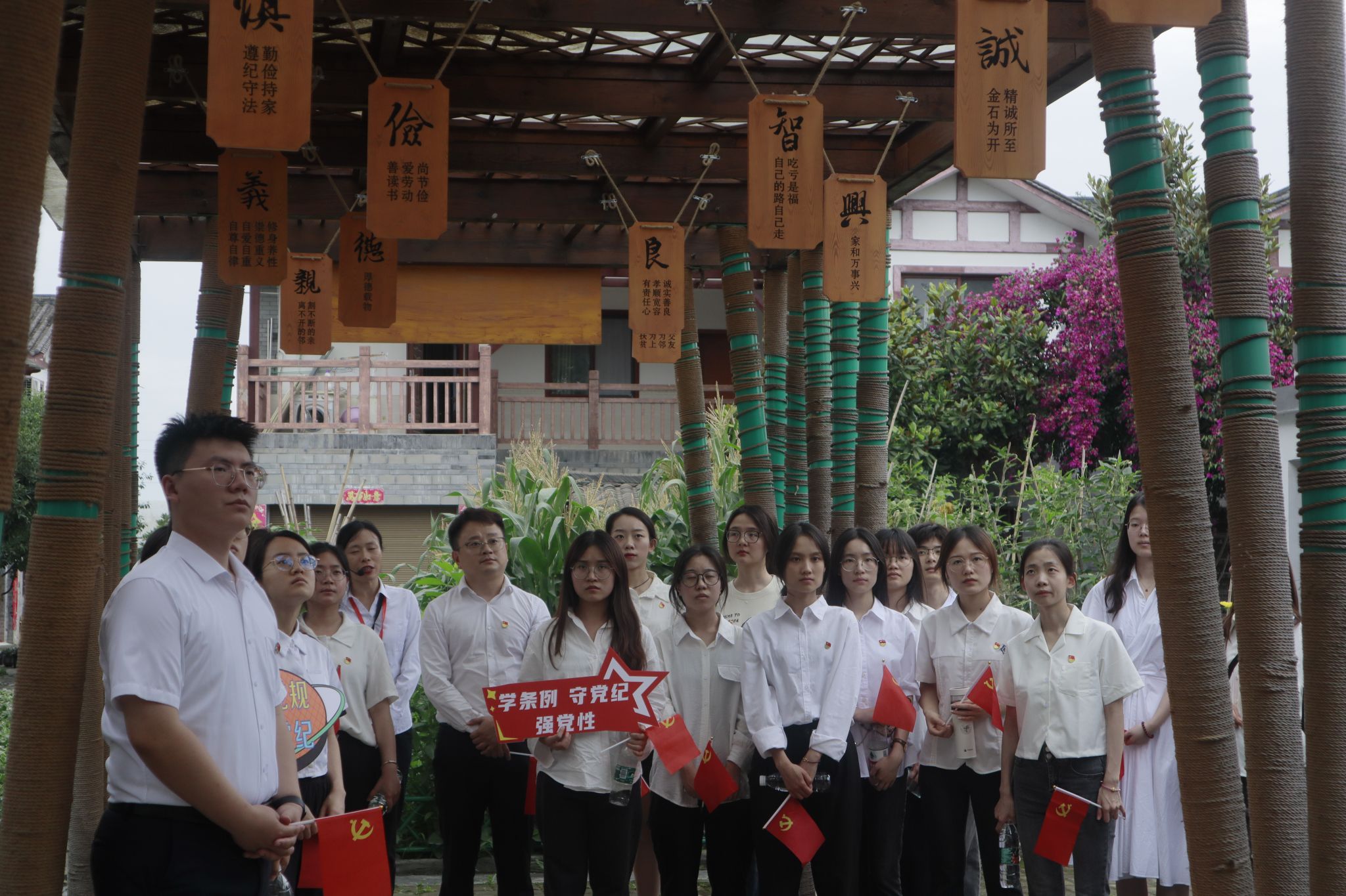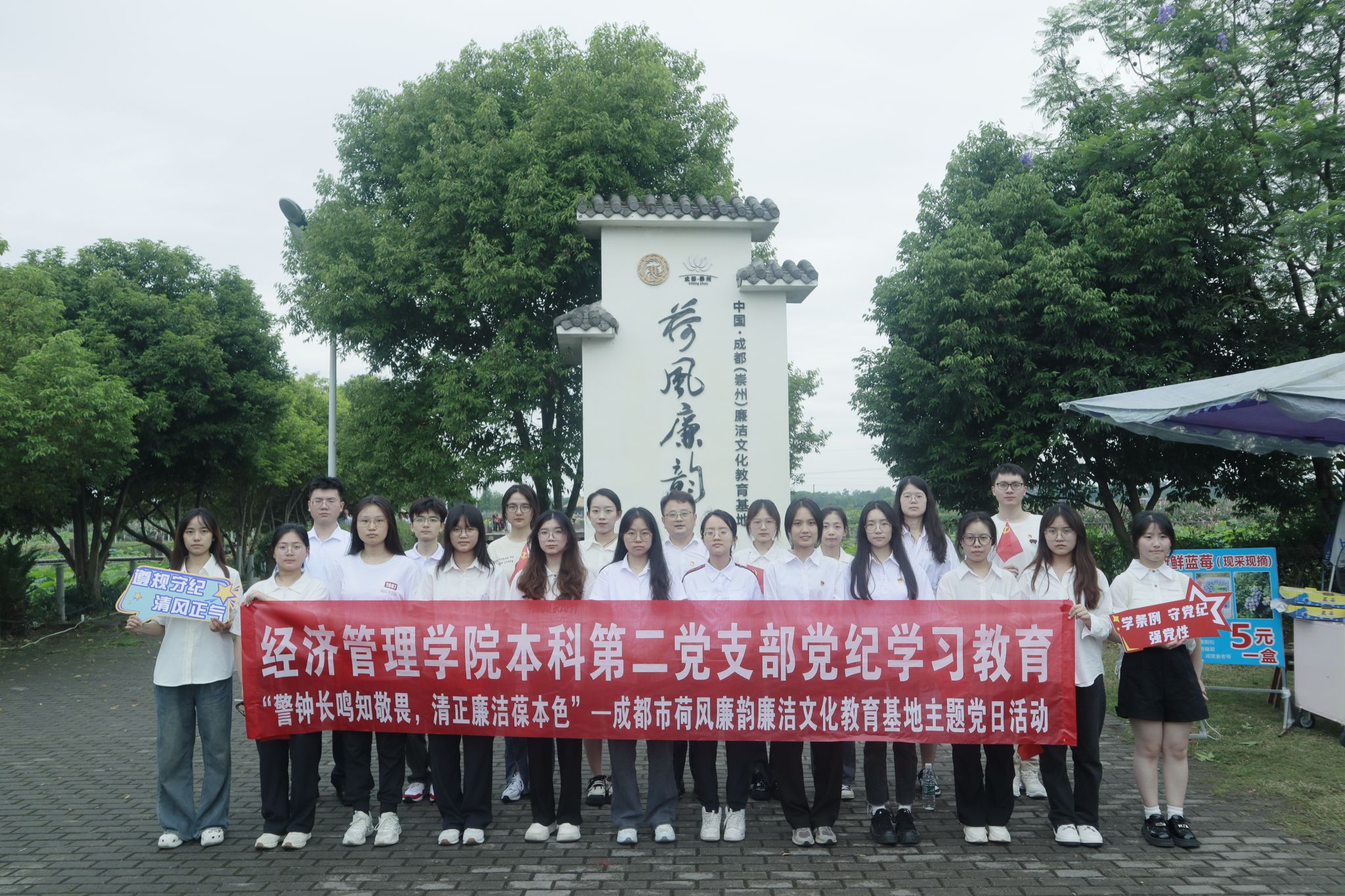 为扎实推进党纪学习教育,切实做到知纪于心,立纪于身,化纪于行,推动党纪学习教育入脑入心,走深走实,进一步抓好廉洁文化建设,筑牢拒腐防变的思想道德防线。2024年6月7日,英国上市365官网本科第二党支部22名党员、积极分子在党支部书记陈建奇带领下,前往位于四川省崇州市隆兴镇的“荷风廉韵”廉洁文化教育基地,实地开展党纪学习教育——“警钟长鸣知敬畏,清正廉洁葆本色”主题党日活动。